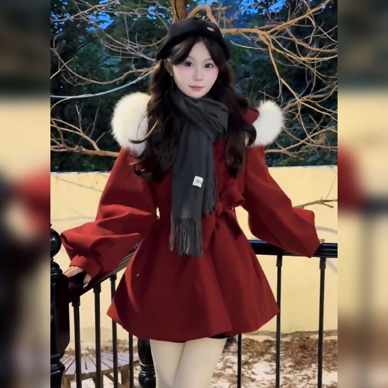 現品/優良商品クリスマス レッド サンタコスプレ 中わた入り 新年 ジャケット レディース コットン 冬 厚手ツイード コート 韓国
