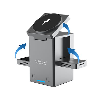 ワイヤレス充電器 3in1 タッチ自動開閉式 Magsafe対応アルミ製 5/7.5/15W 置くだけ充電 iPhone用 iPhone/1716/15/14/13/12シリーズ対応