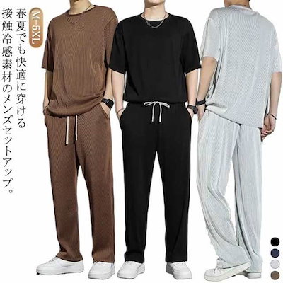 セットアップ Tシャツ 半袖 メンズ 涼しい 上下セット 大きいサイズ ジャージ スウェット 部屋着 夏 ひんやり 接触冷感 ゆったり 無地 スポーツ ロングパンツ 2点セット 柔らかい ルームウェア