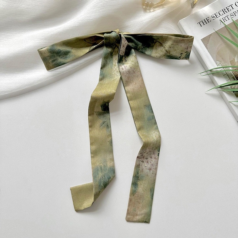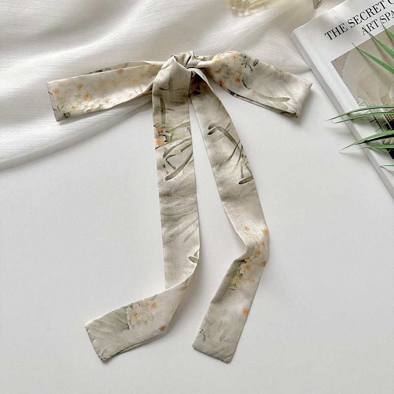 蝶結び中国風レトロ細長いシルクスカーフ ヘアバンド少女向けおしゃれ万能リボン柄ギフトボックスリボン付きスカーフ