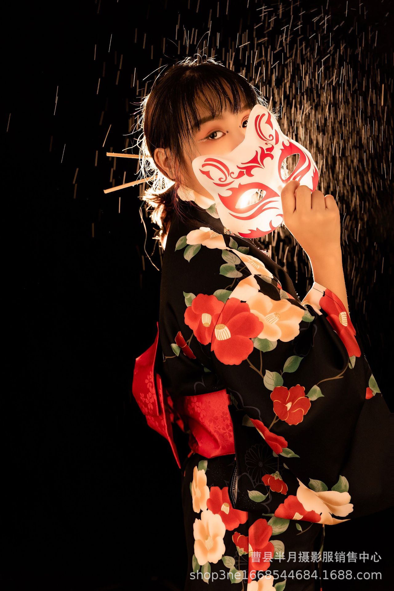 神明の少女の着物は日本式のレトロなワンピースを改良し結婚式&七五三花見・卒業式にも使える和モダン浴衣祇園祭専用涼感麻着物3点組プロ写真撮影付きプラン(天神祭/隅田川花火大会