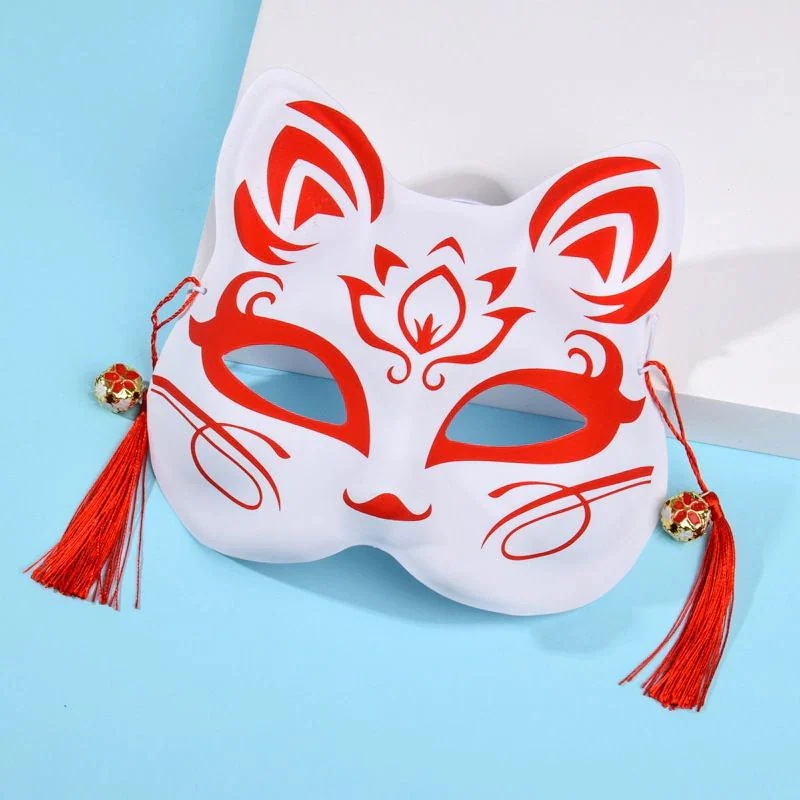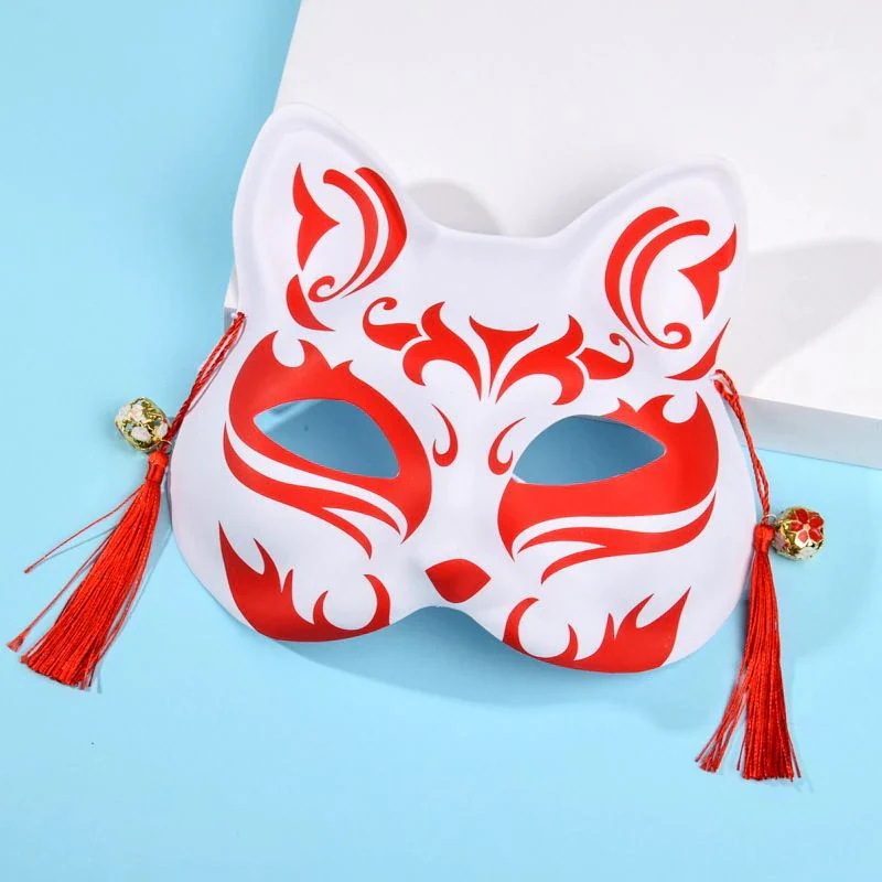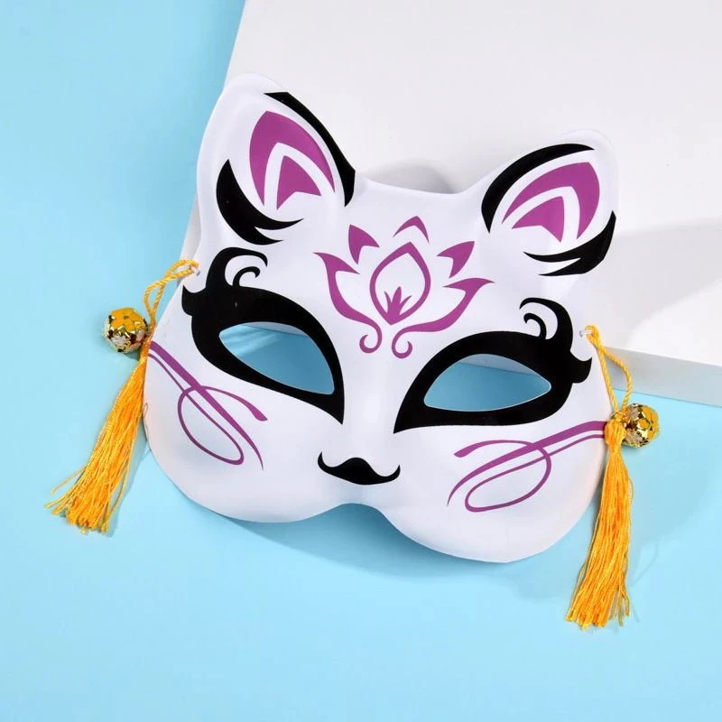 神明の少女の着物のキツネのマスクの古風な日本式は半顔のマスクの手描きの顔の譜を装います仮面かめん
