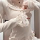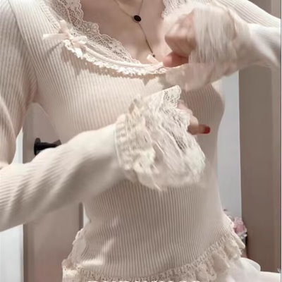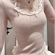 おしゃれで甘い純欲ピンクの乙女Tシャツレースフェイク長袖プルオーバー2枚リボン独特のトップスファッション