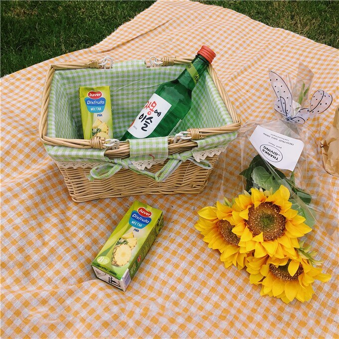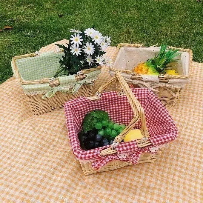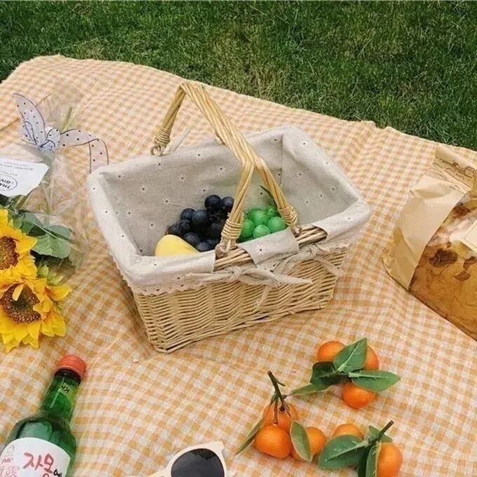 生地籐ピクニックバスケット フルーツバスケット 収納バスケット 韓国インテリア 韓国雑貨 収納 小物