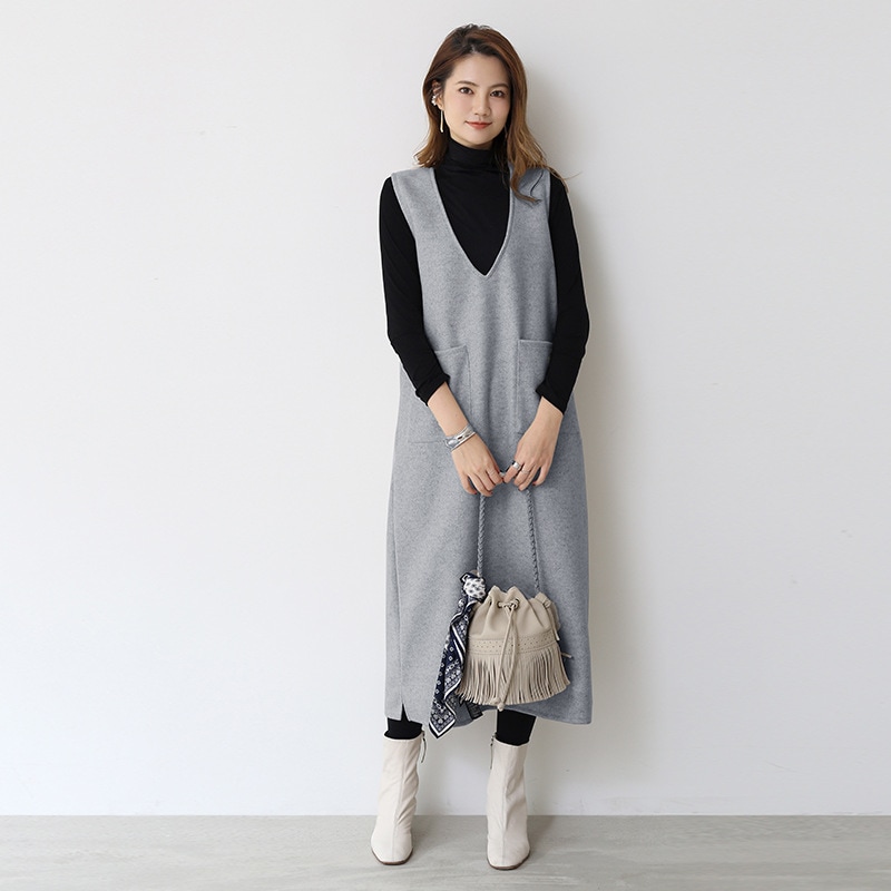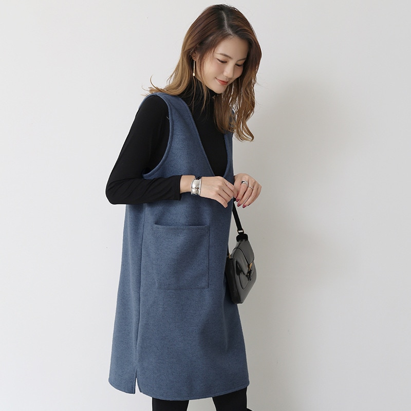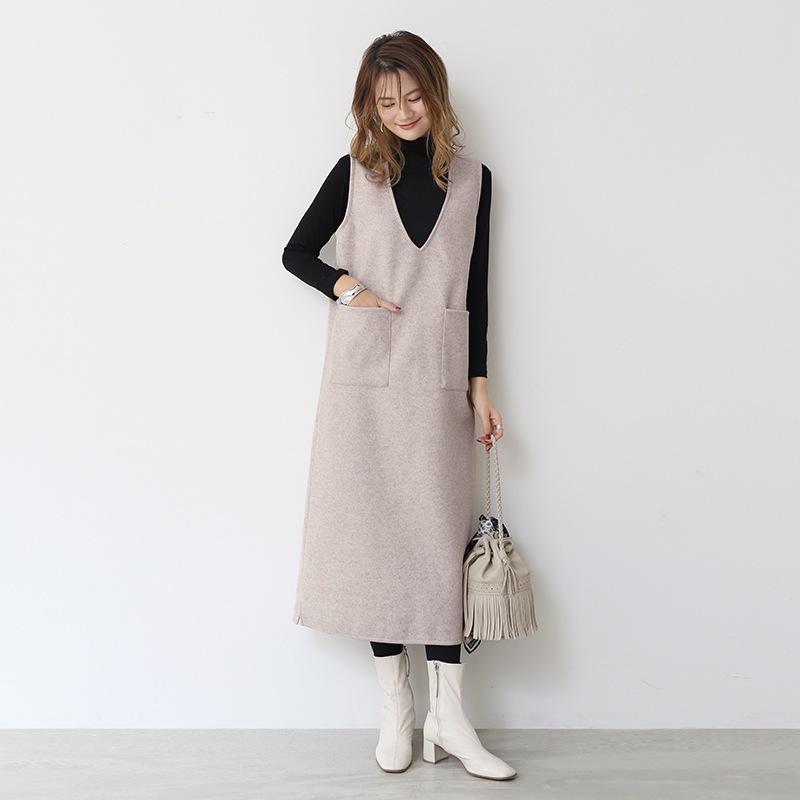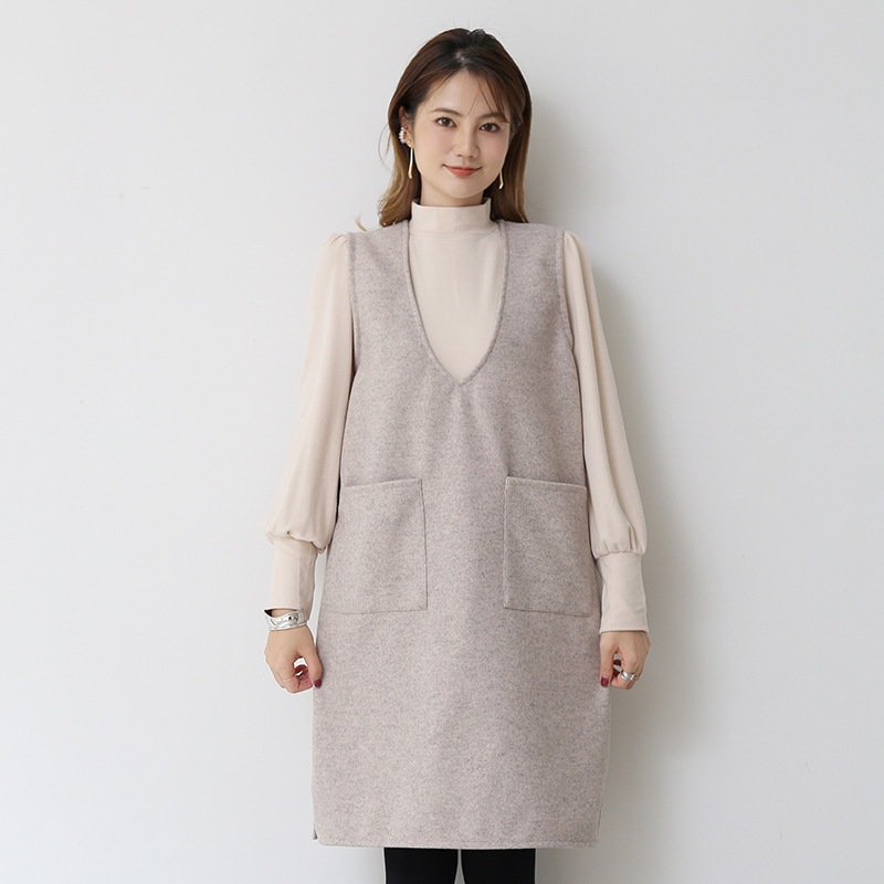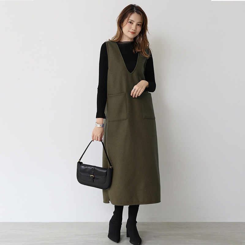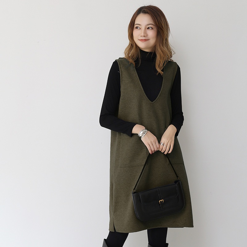 日系ウールベスト女性2026年冬新作ミディアム丈ベスト スカート用インナーワンピース単品ベスト