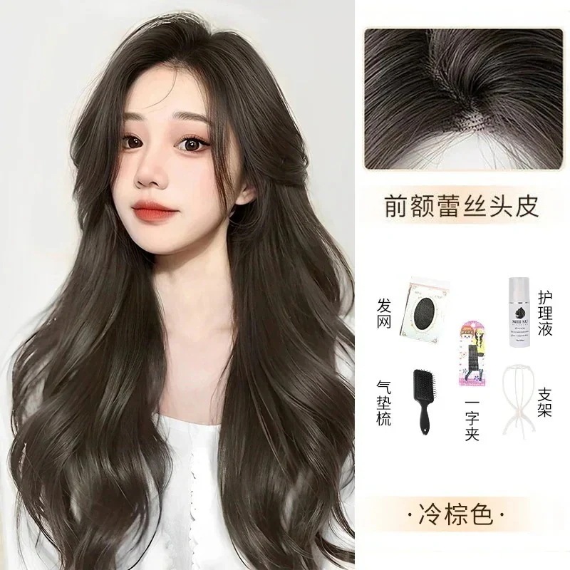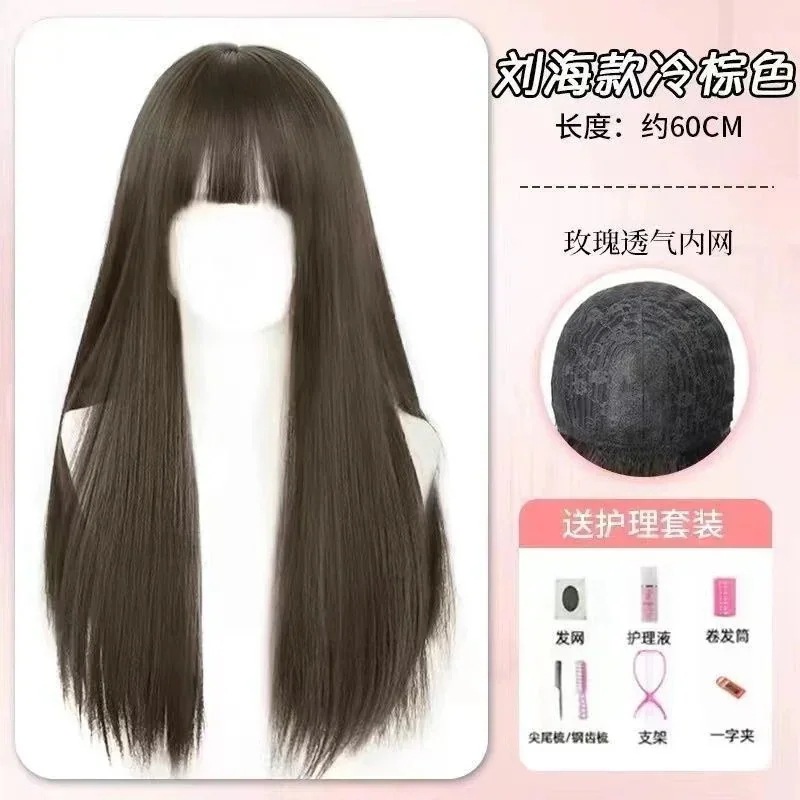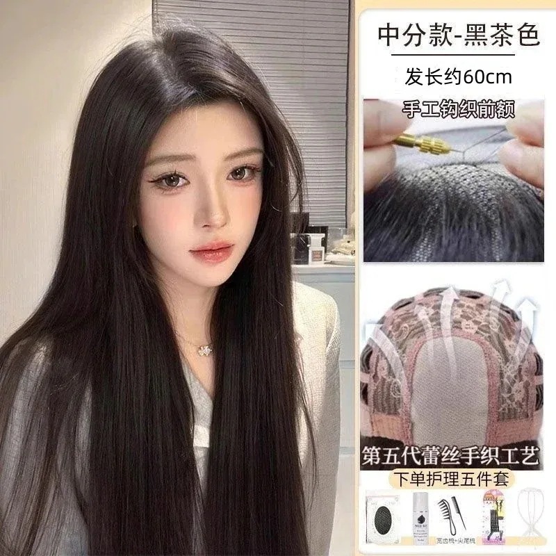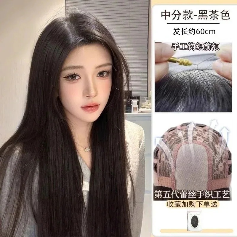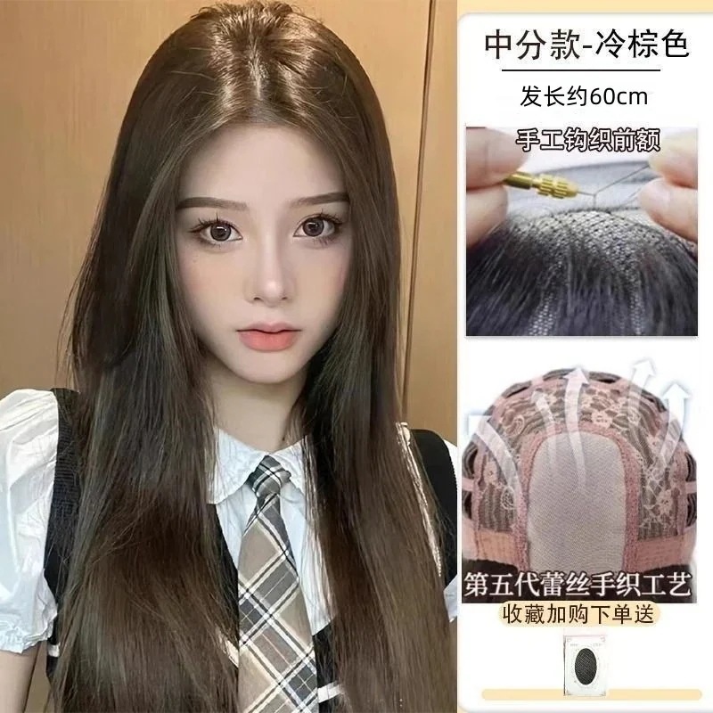 ハロウィン コスプレ フルウィッグロングヘアーフロントレースのオールインワンセット自然なミディアムロングストレートヘアーウィッグをシミュレーション