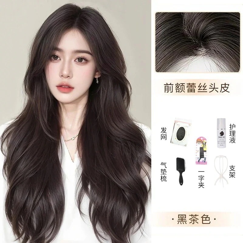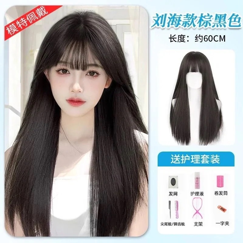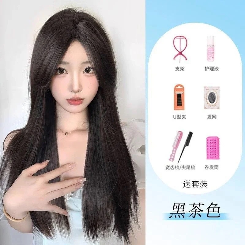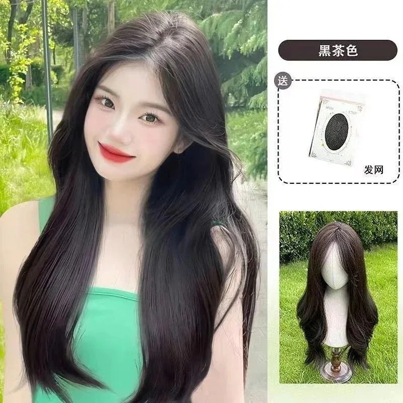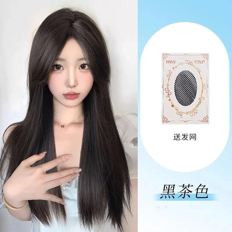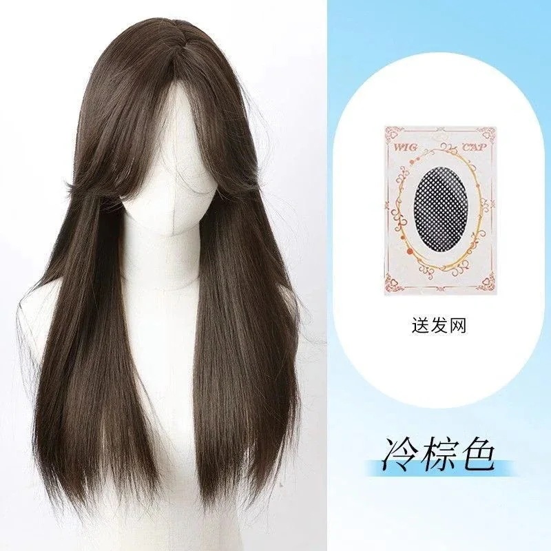 ハロウィン コスプレ フルウィッグロングヘアーフロントレースのオールインワンセット自然なミディアムロングストレートヘアーウィッグをシミュレーション