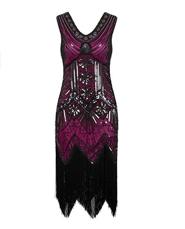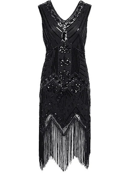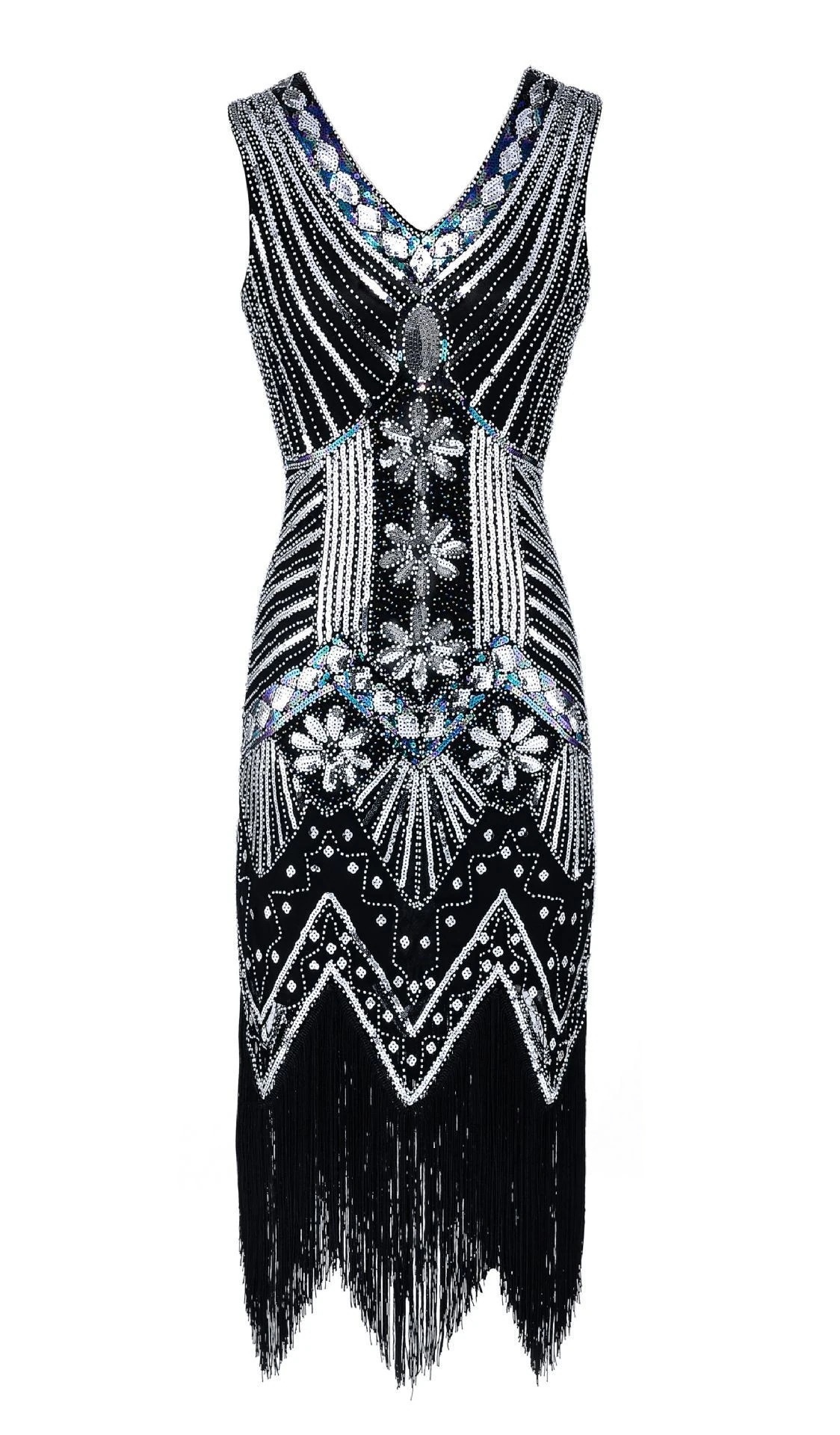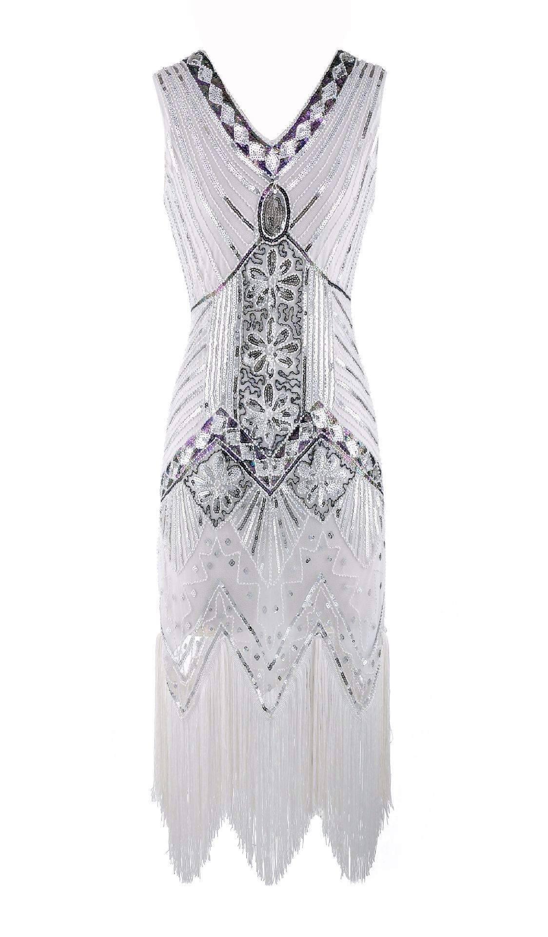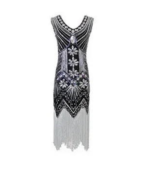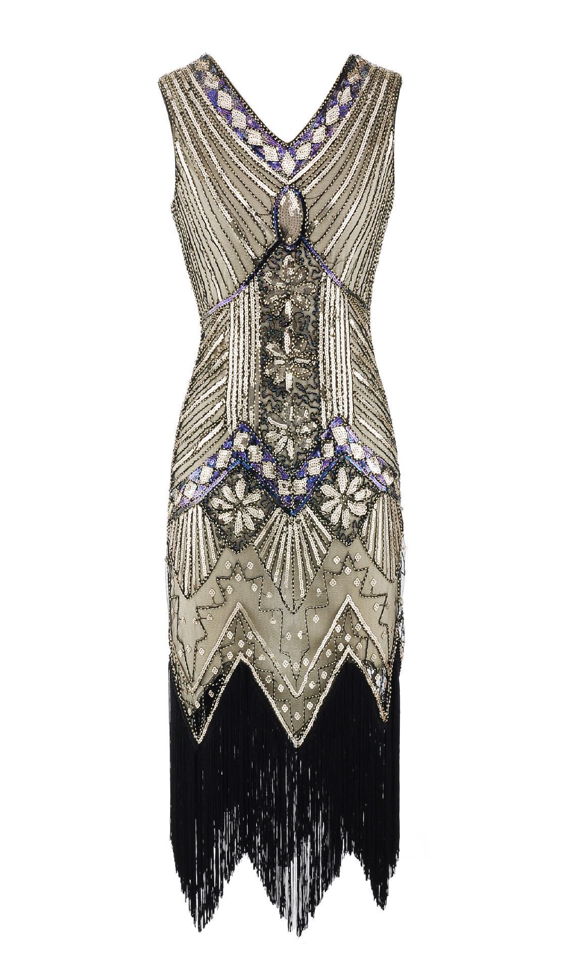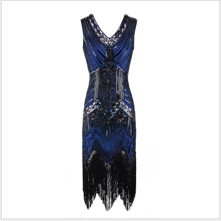 20代ヴィンテージ スパンコールビーズドレス前後Vネックおしゃれなタッセル