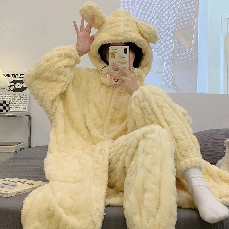 パジャマ 二点セットウェアウォーム裹起毛 厚手 ホームウェア 快適ウェア モコモコパジャマ