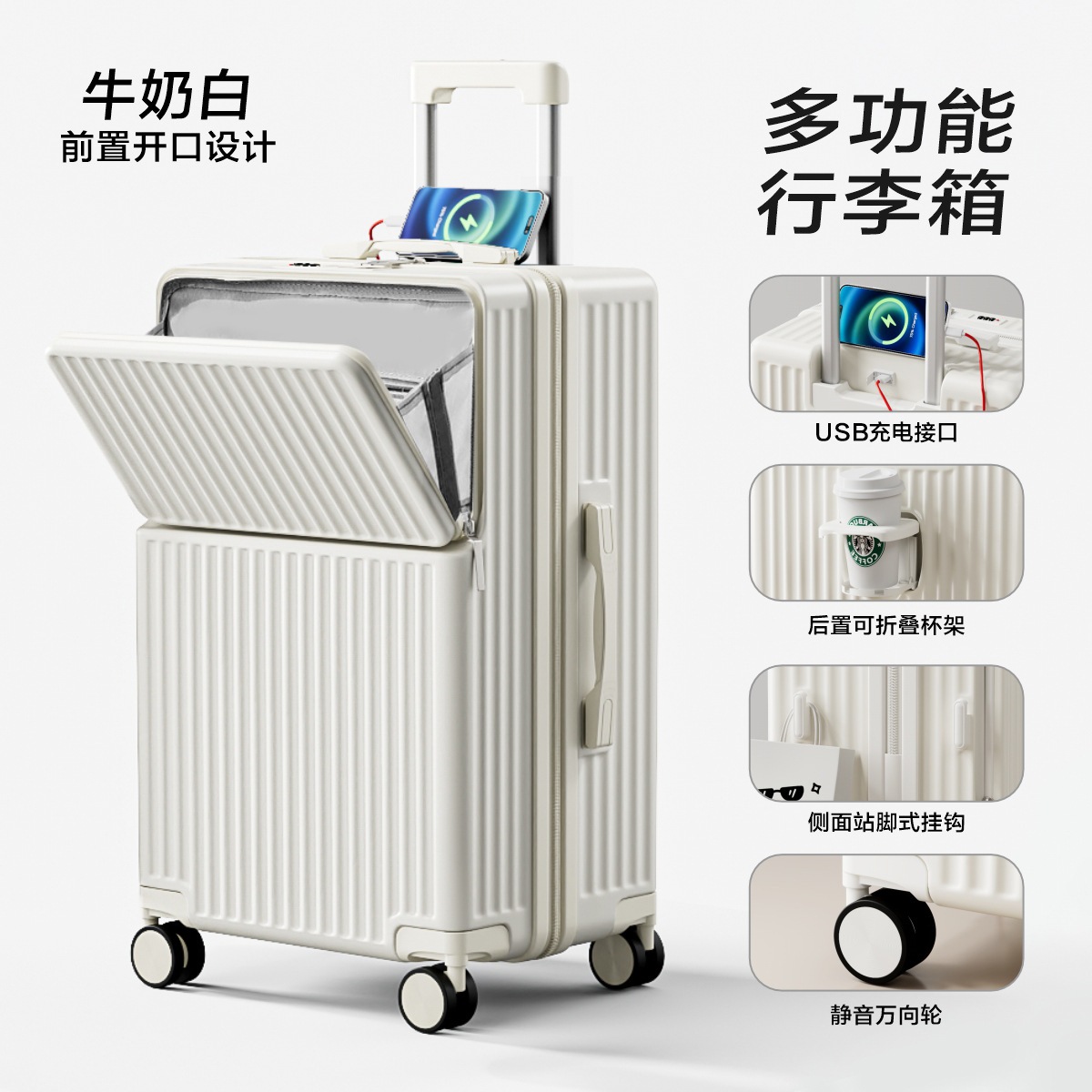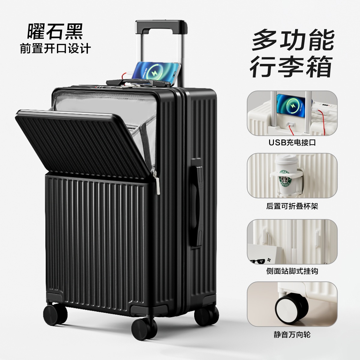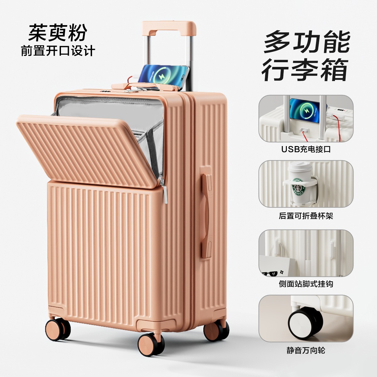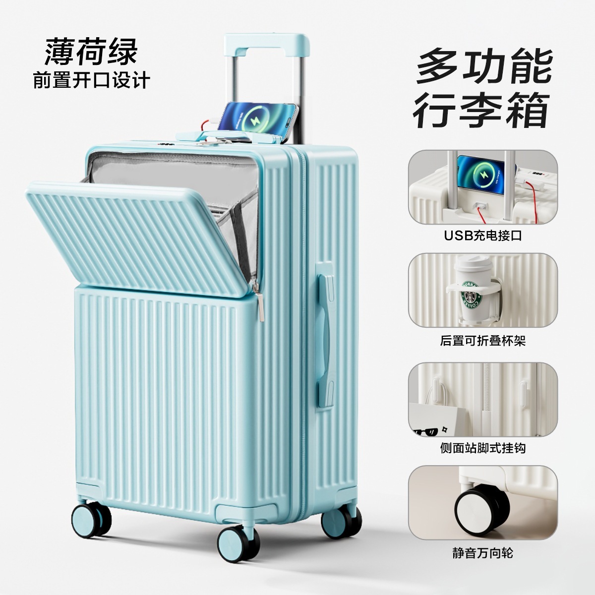 フロントオープンスーツケース女性多機能高颜値耐久性タイロッド暗号箱2026新型スーツケース男性20インチ