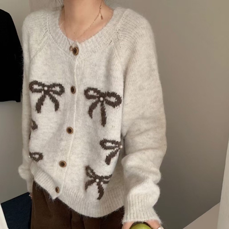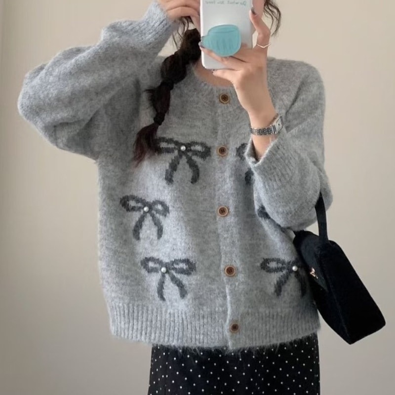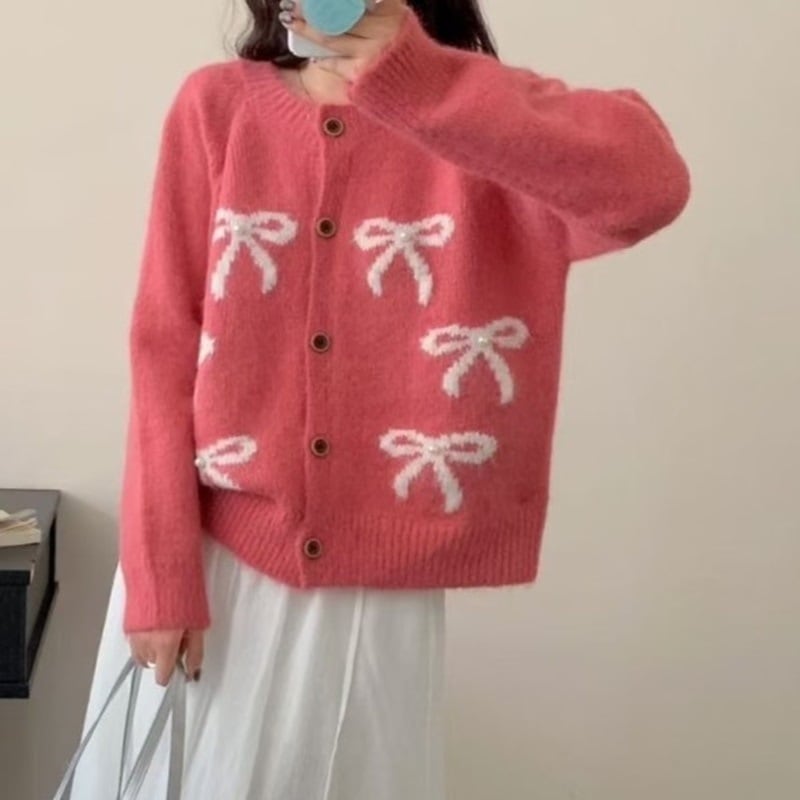 【3日出荷】 立体リボン カーディガン 丸首 だらっと ゆったり 春服 レディース 長袖tシャツ レディース 母の日