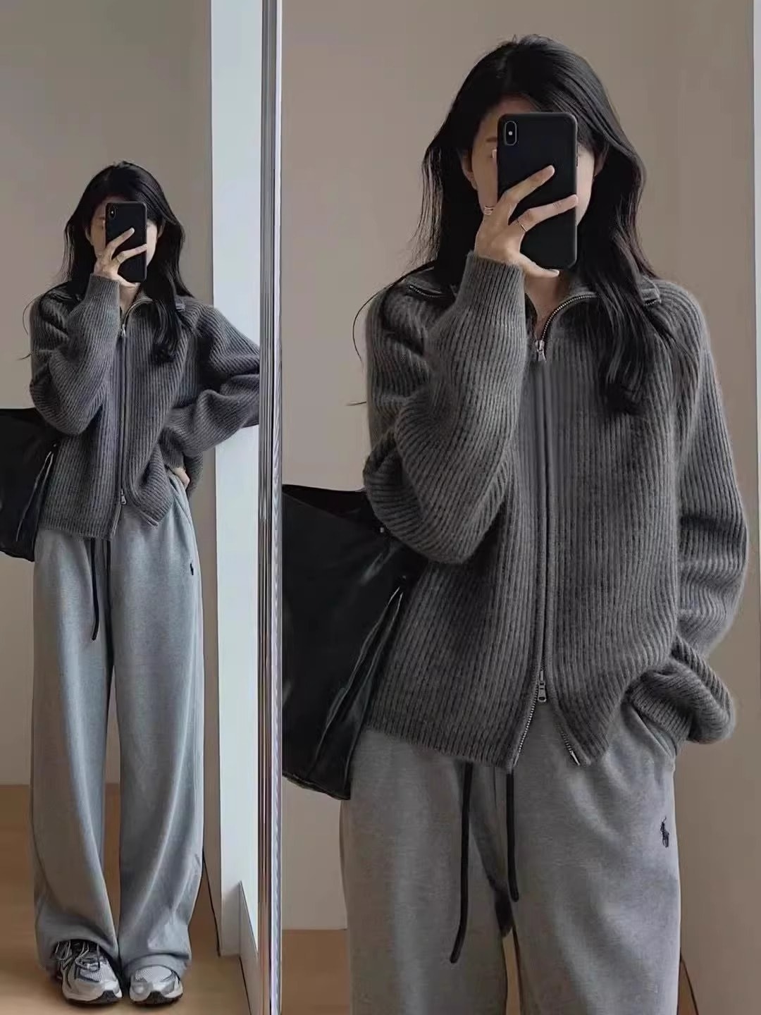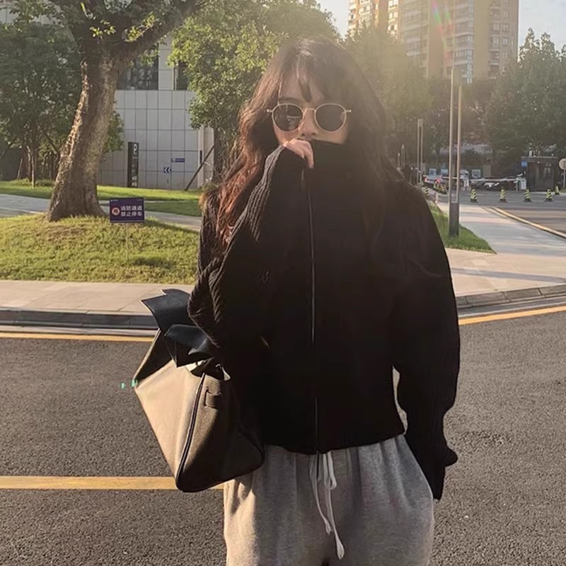 アウター セーター レディース レトロ 新作 韓国風 襟付き ジッパー付き ニットカーディガン ゆるいスタイル ゆったり 春用 アウター