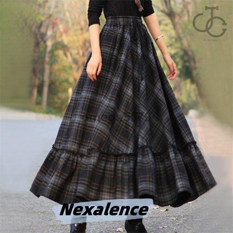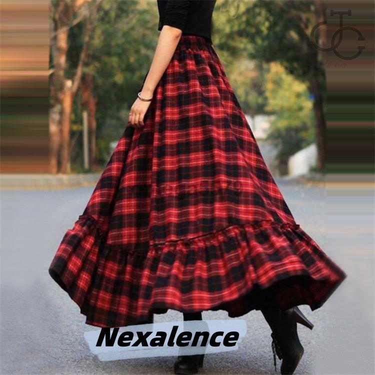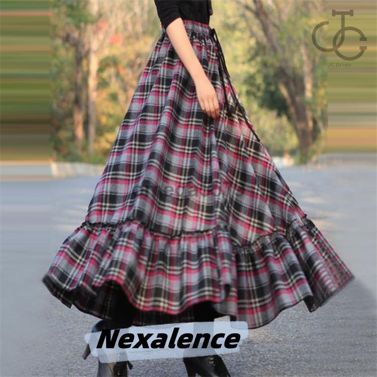 スカート 春秋 ロング ボトムス ロンスカ ロングスカート フレアスカート レディース ロング マキシ丈 ハイウエスト チェック柄 ギンガム チェック