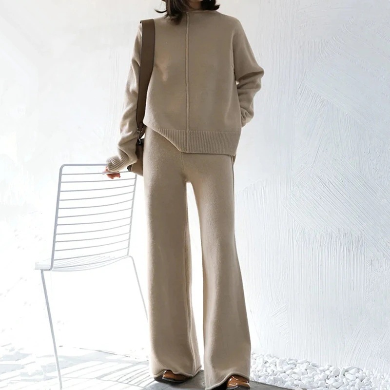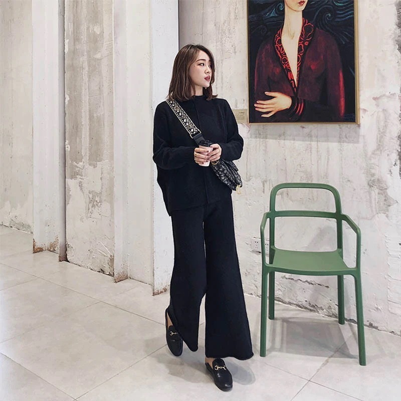 セット ニットセットアップ 新作 二点セット 気質 おしゃれ シンプル ワイドパンツ セーター レディースセットアップ