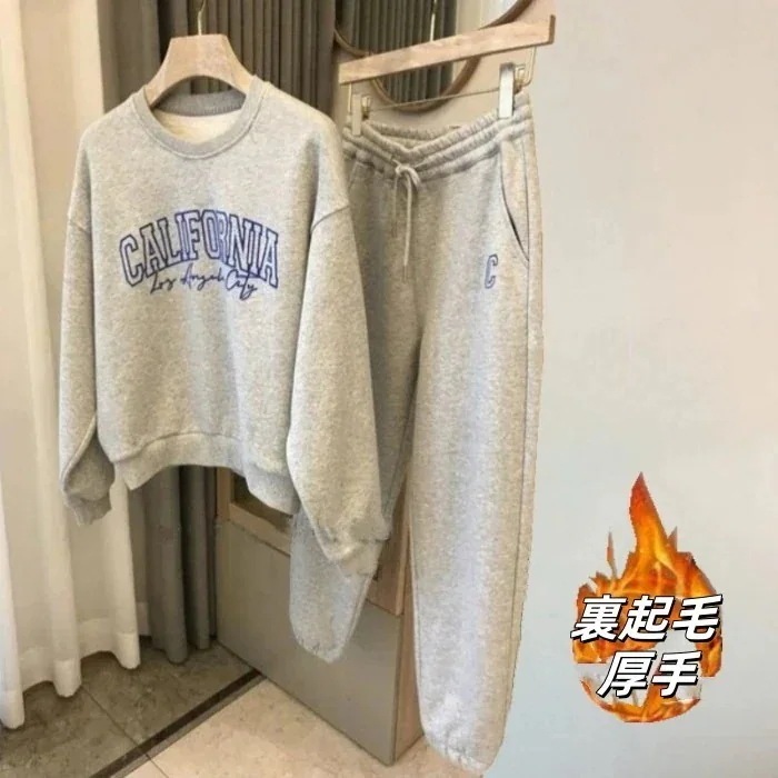 大きめサイズ 裏起毛 Tシャツ レディースファッション スウエット 二点セット シンプル セットアップ レディース 丸ネック トップス 新作 ワイドパンツ