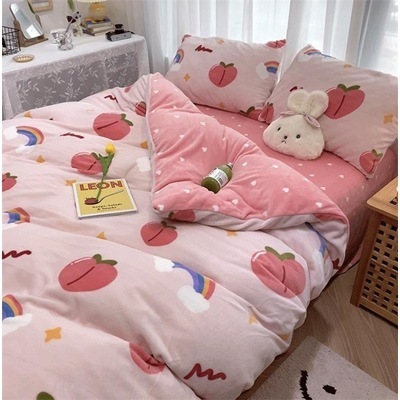 当店在庫あり韓国ファッション ベッド 4点セット 冬 両面 暖かさ シート sweet系 オシャレ エレガント キルトカバー 上品映え おしゃれな ベッドシート 暖かい 厚手