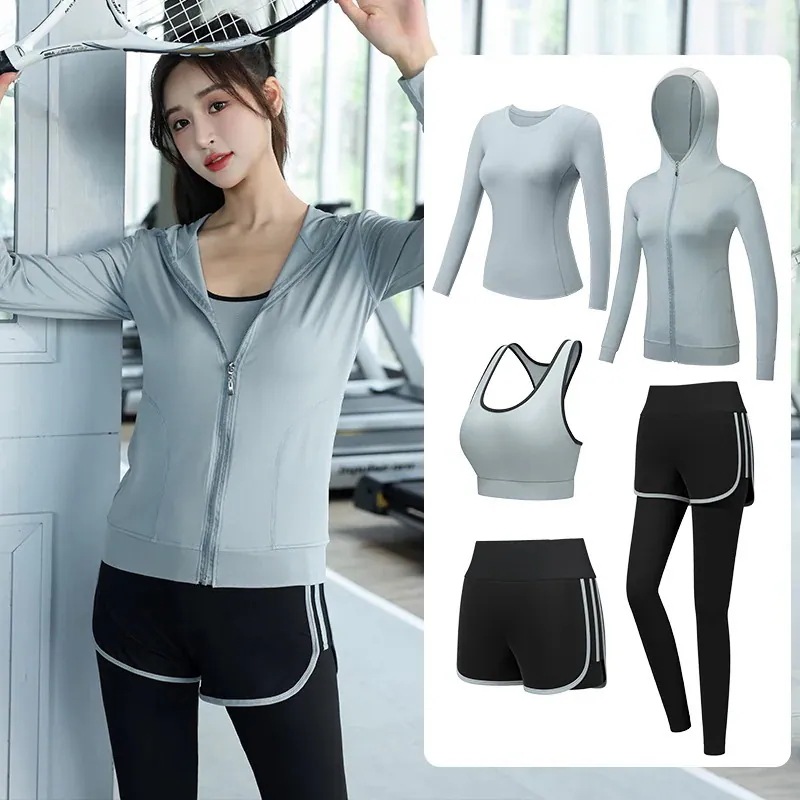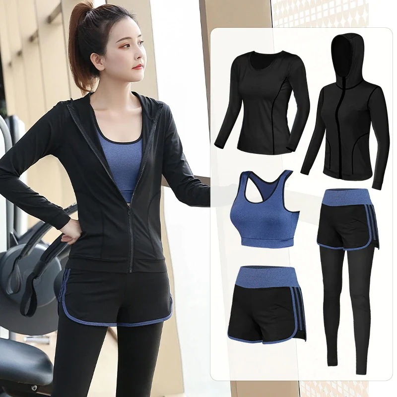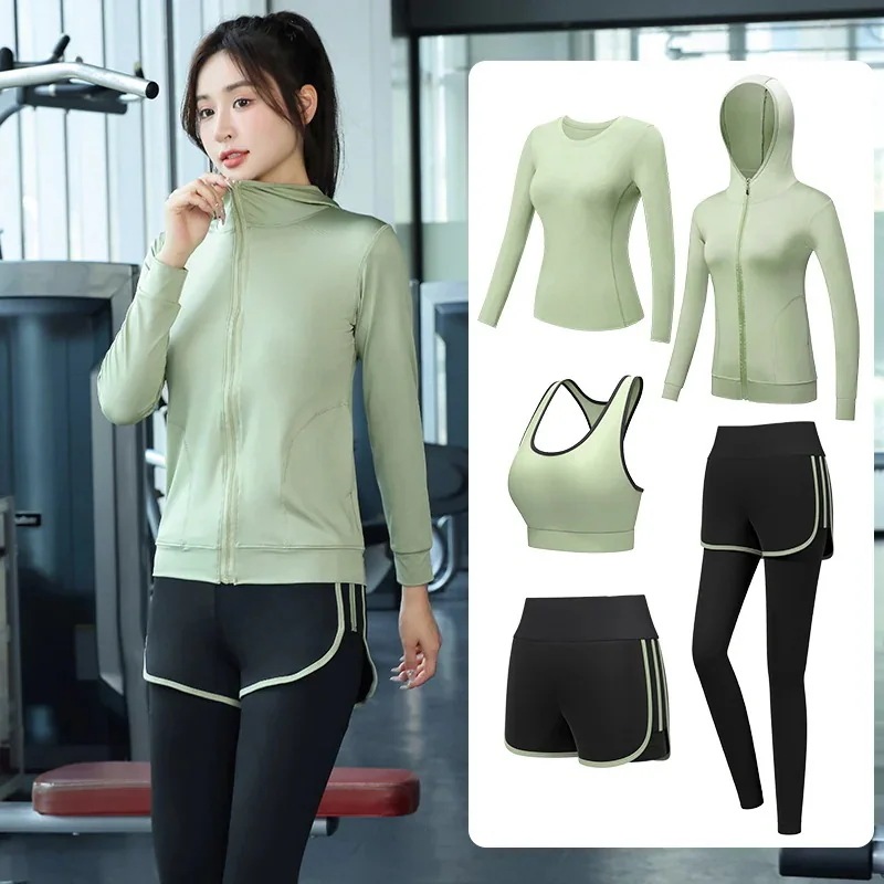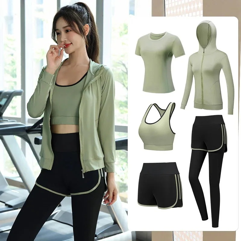 春夏 ヨガウェア セットアップ ヨガトップス スポーツウェア 5点セット 吸汗速乾 通気性 レディース ヨガウェア 上下セット レディース 上下セット