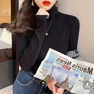 新作 韓国ファッション ニットックセーターハーフハイカラーのプルオーバーニットセーター インナー 純色 長袖 無地 可愛い