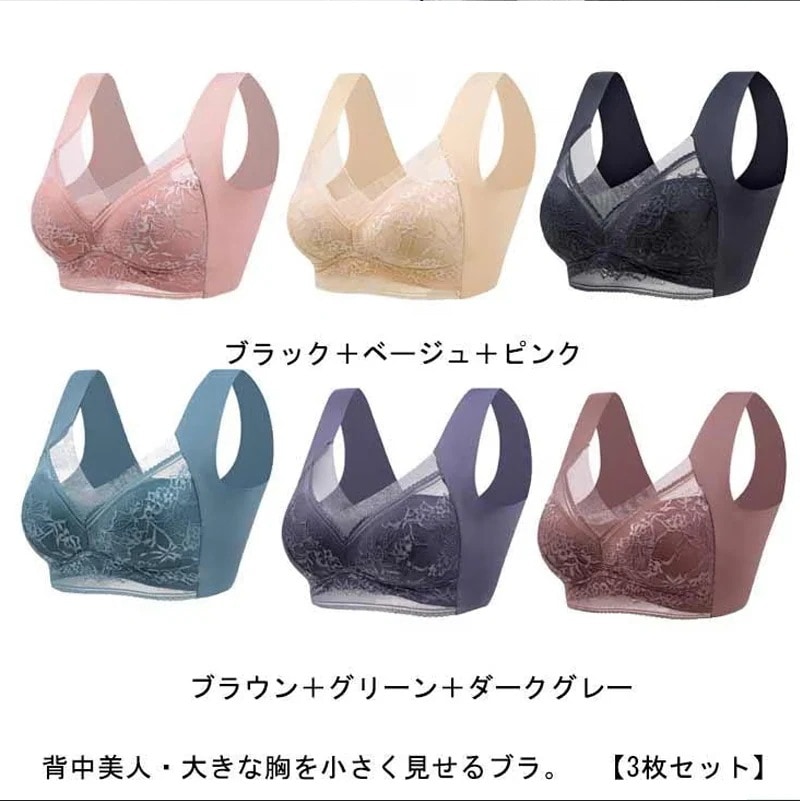 迅速な出荷薄手 3枚セット ブラジャー シームレス 胸を小さく見せるブラ ノンワイヤーブラ 締め付け感ない 昼夜兼用 脇高 ナイトブラ 軽量 昼夜兼用 レ