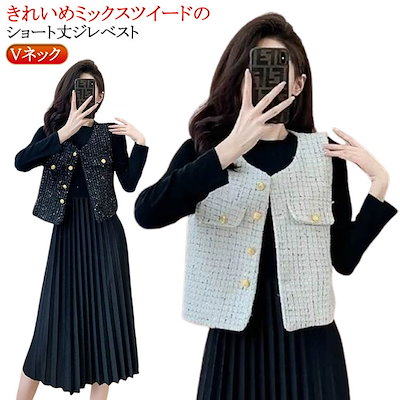 2026年初の販促ツイード ベスト レディース 春 秋 アウター ツイード ベスト 前開き ジャケット ツイードジレ ジレベスト 春秋 ベスト ジレ Vネック 韓国ファッション 上品 エレガント 高見