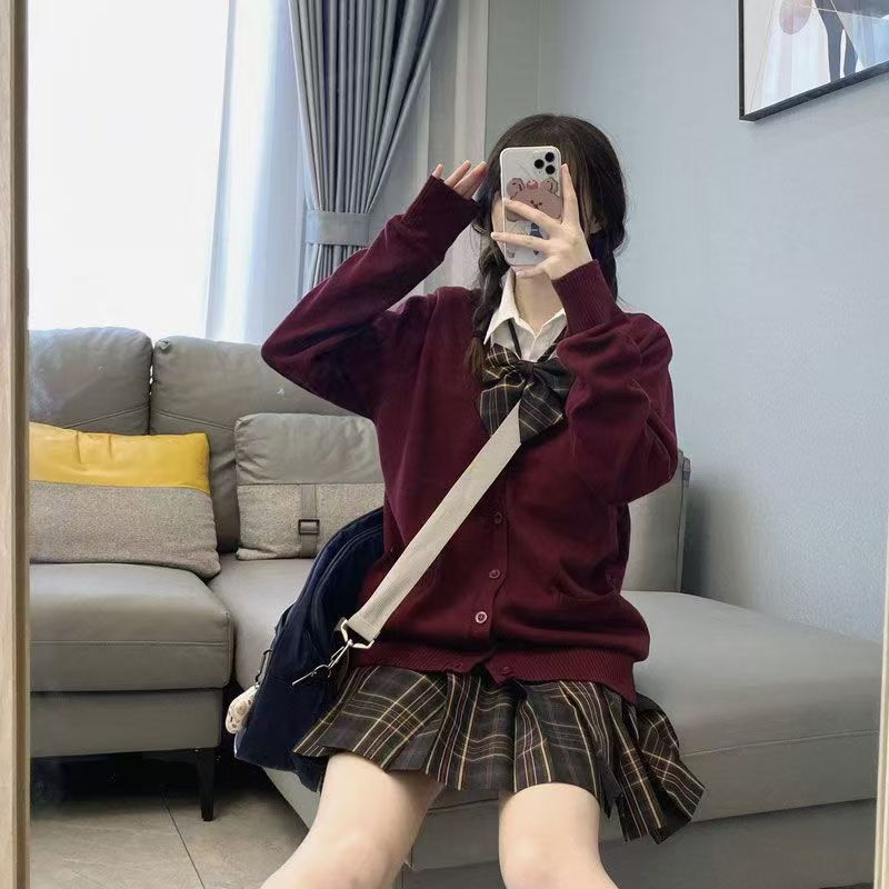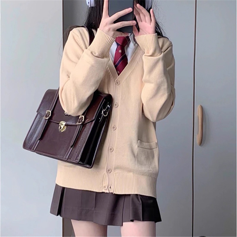 日系 JK制服 学園風 ニットカーディガン 女性用 ベーシックデザイン 秋冬 Vネック カーディガン セーター アウター 学生制服