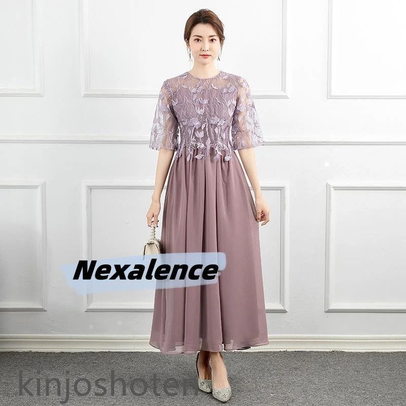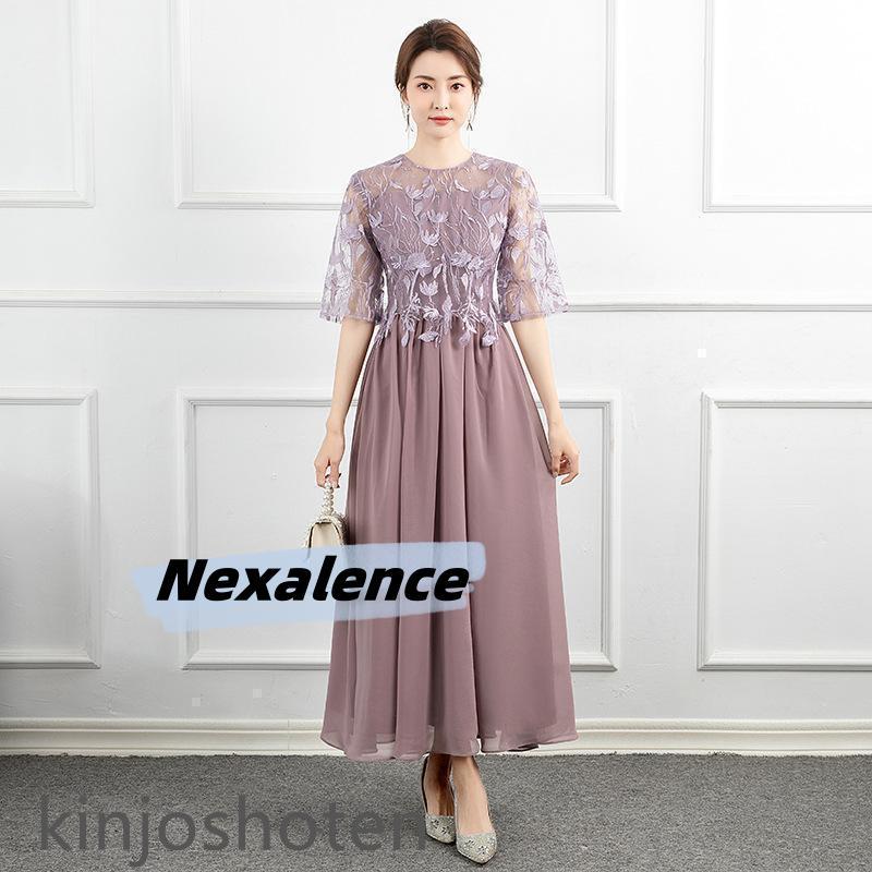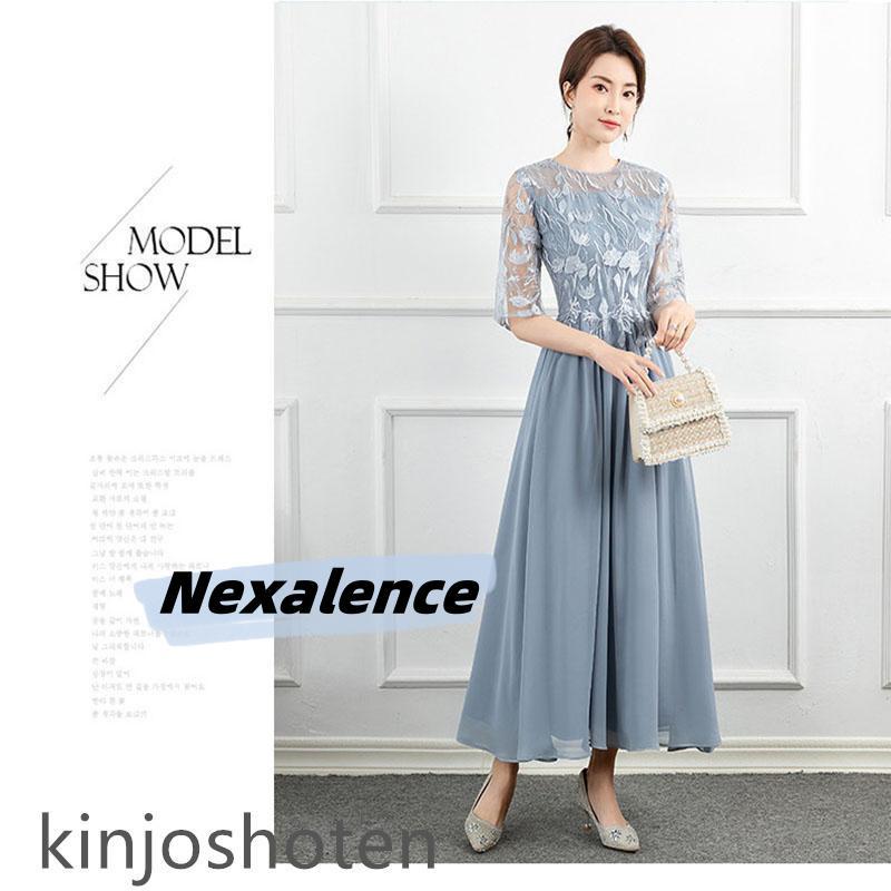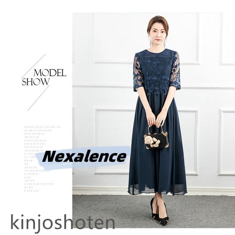 パーティードレス 大きいサイズ 結婚式 服装 七分袖 レース ワンピース 二次会 お呼ばれ 発表会 フォーマル20代 30代 40代 50代