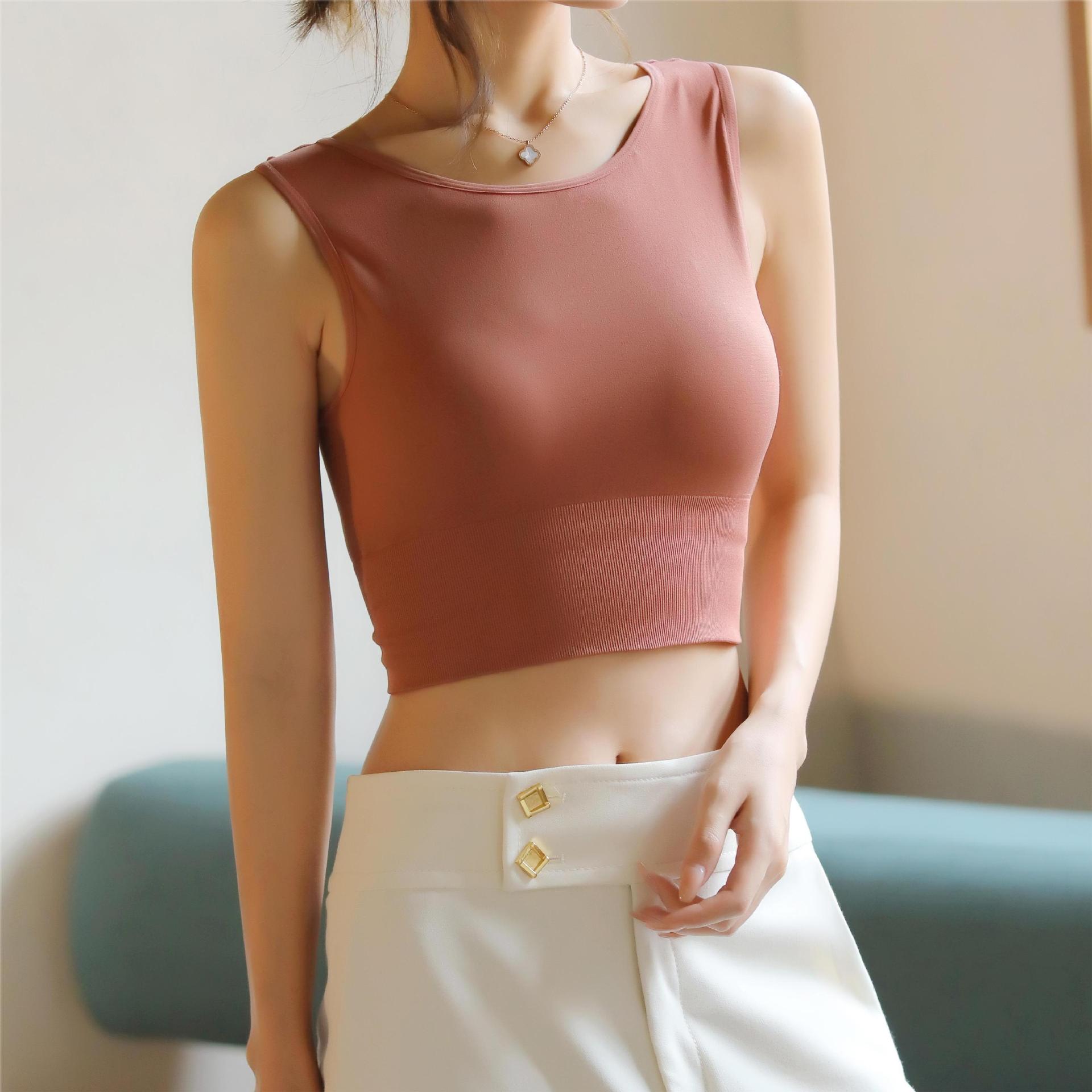 【3日出荷】人気新作2025肌にやさしい春アンダーウェアレディースキャミソール無地タンクトップ韓国ファッションレディーストップスカップ付きインナー無痕美背で腹を収めるXJNY188