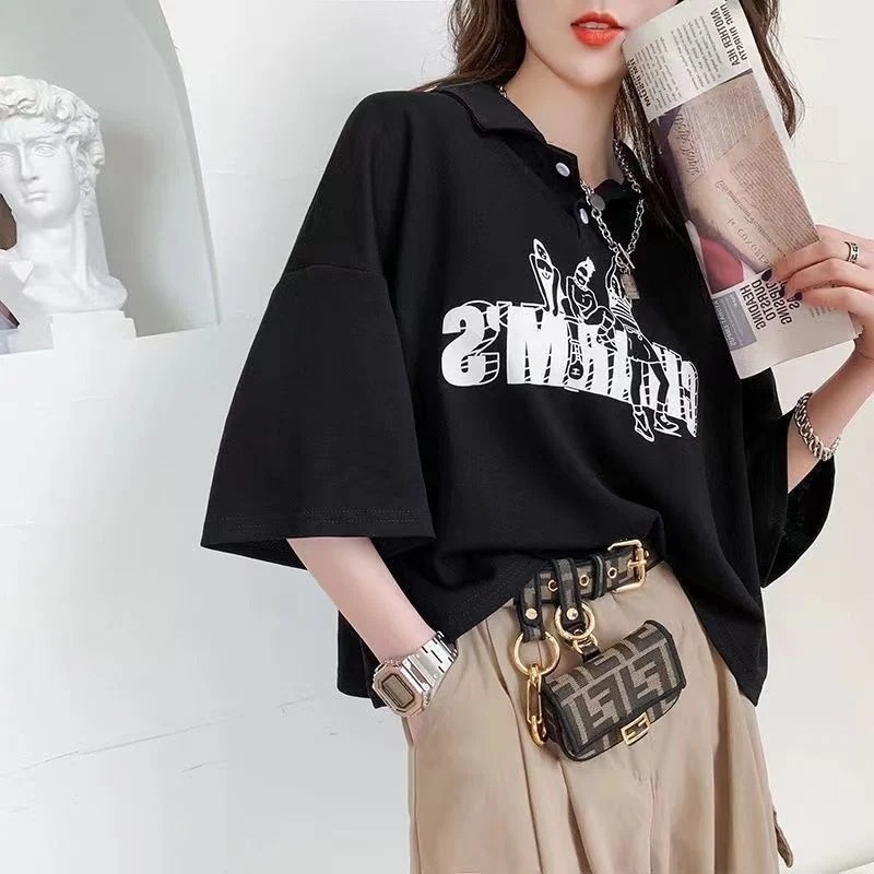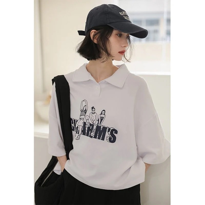 【3日出荷】韓国ファッション 純綿 Tシャツ 夏 Polo 学生 可愛い 花柄 カジュアル ゆったり Tシャツ レディース ショート トップス キュート タンクトップ 半袖
