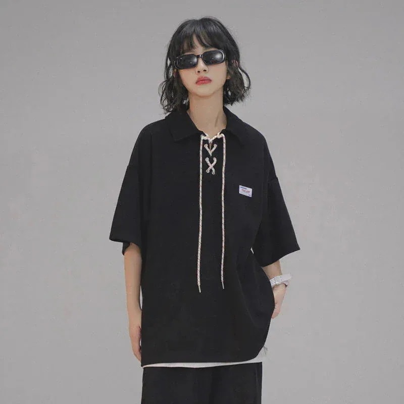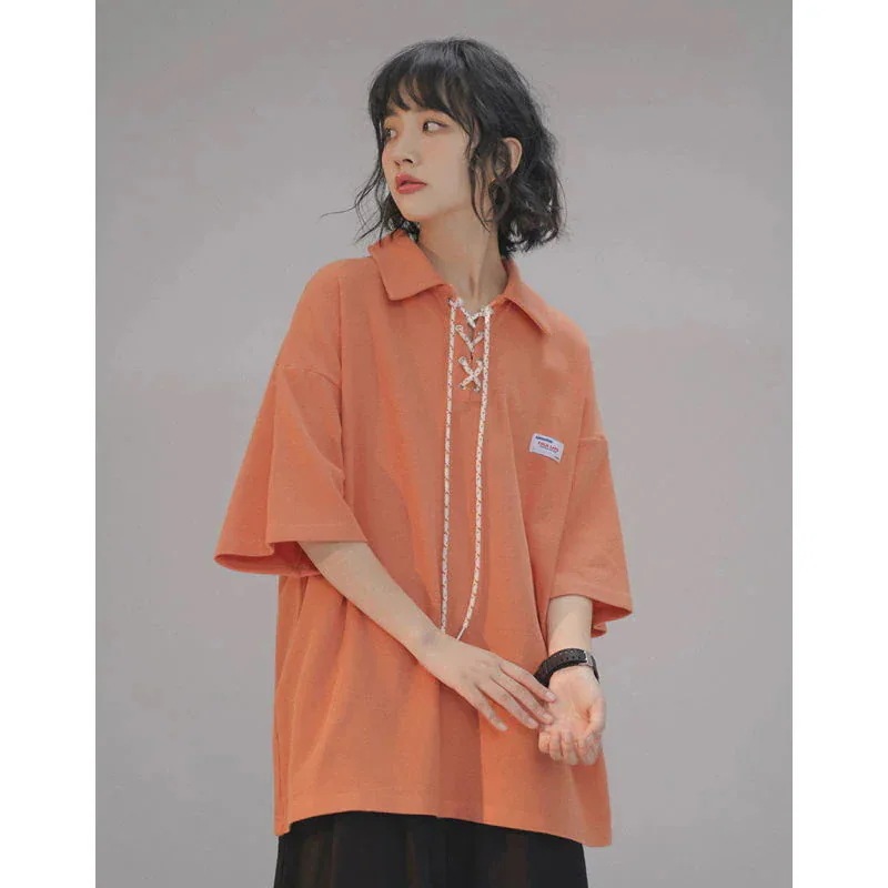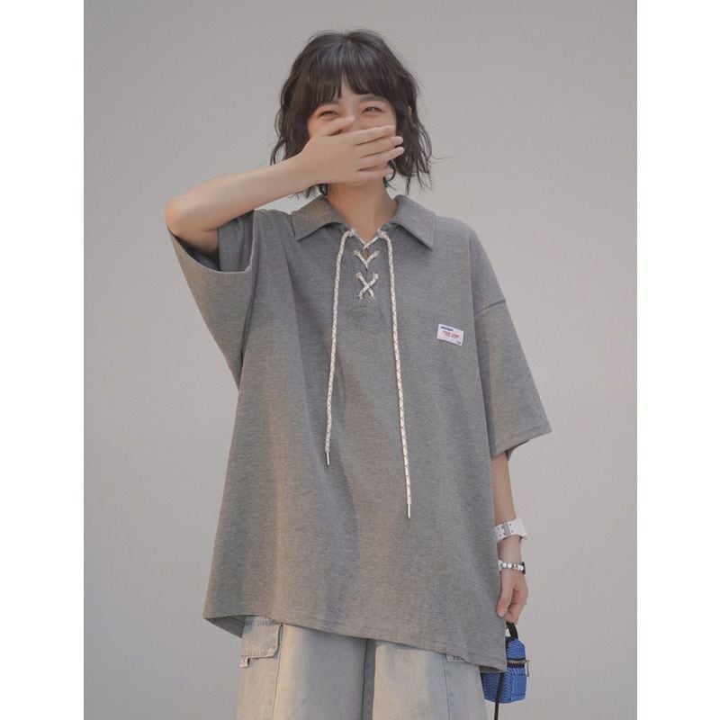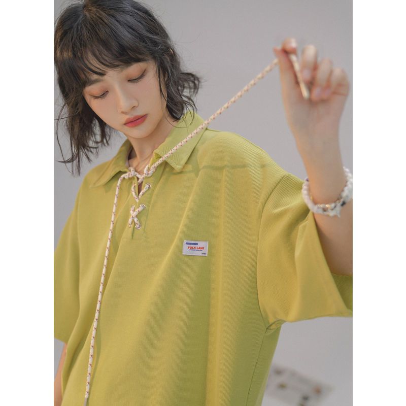 【3日出荷】日系 可愛い レトロ Polo襟 ゆったり Tシャツ おしゃれ 百掛け カジュアル カップル 半袖 着痩せ 港風 キャンパス風 タンクトップ tシャツ 半袖 レディース