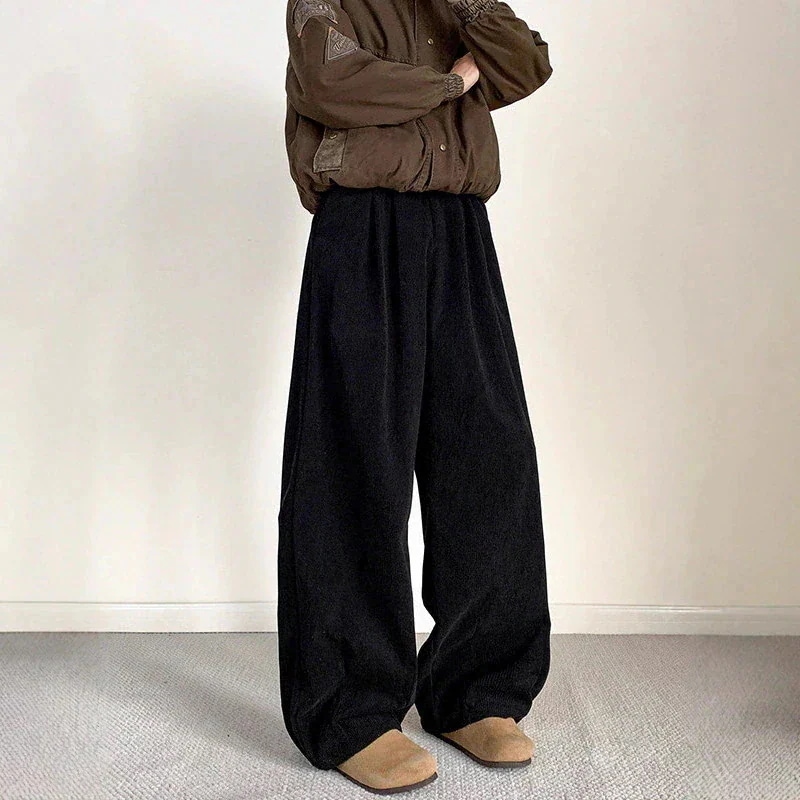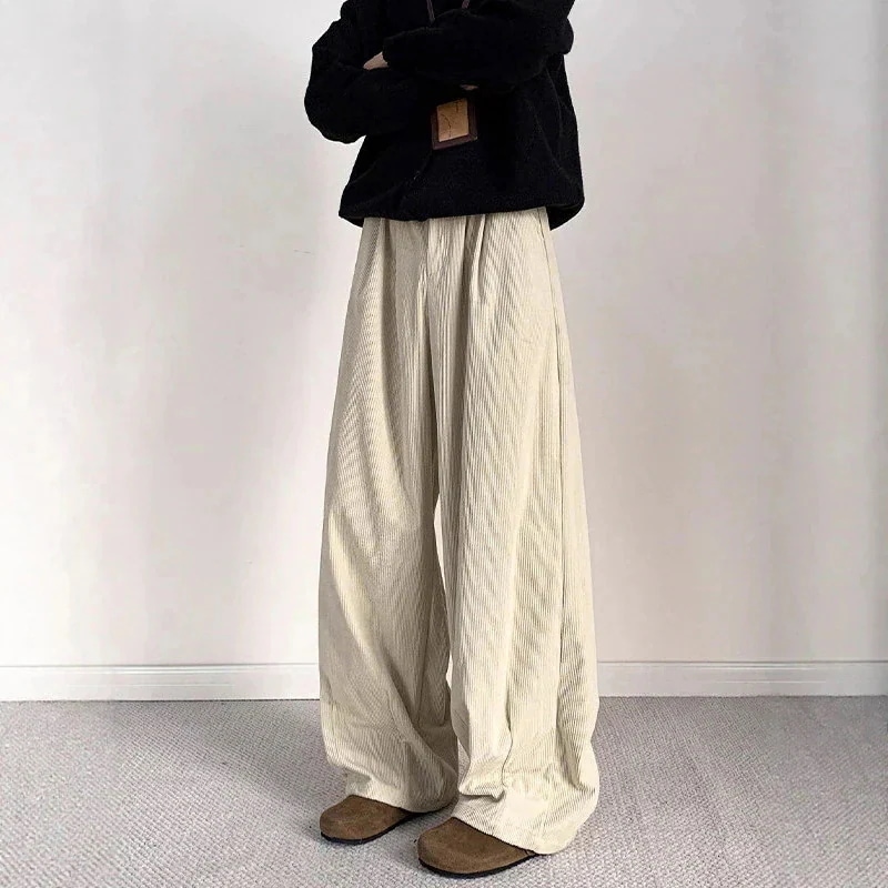 コーデュロイ メンズ パンツ 秋冬 裏起毛 厚手 大きめサイズ アメリカンスタイル ゆったり 垂れ感 ワイドレッグ カジュアル ロングパンツ