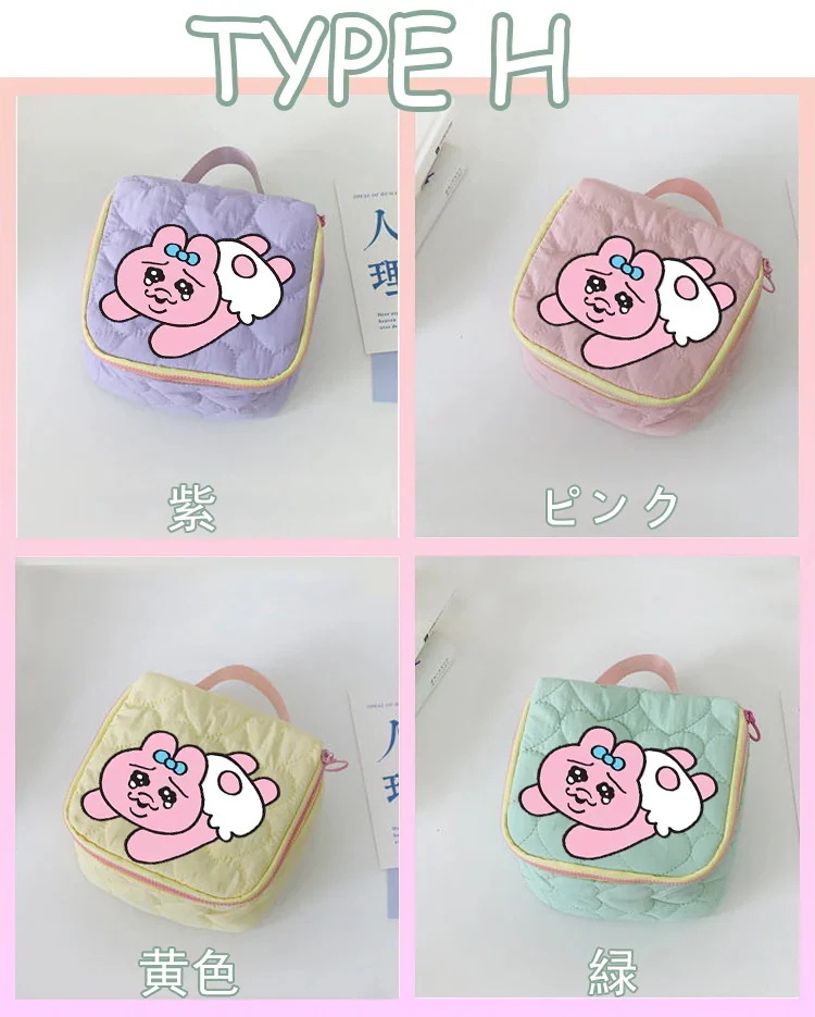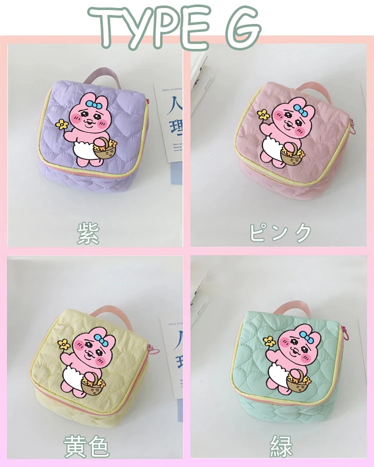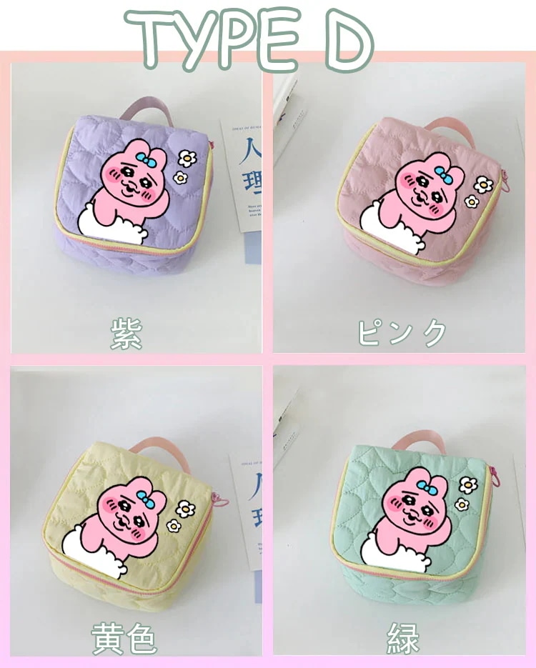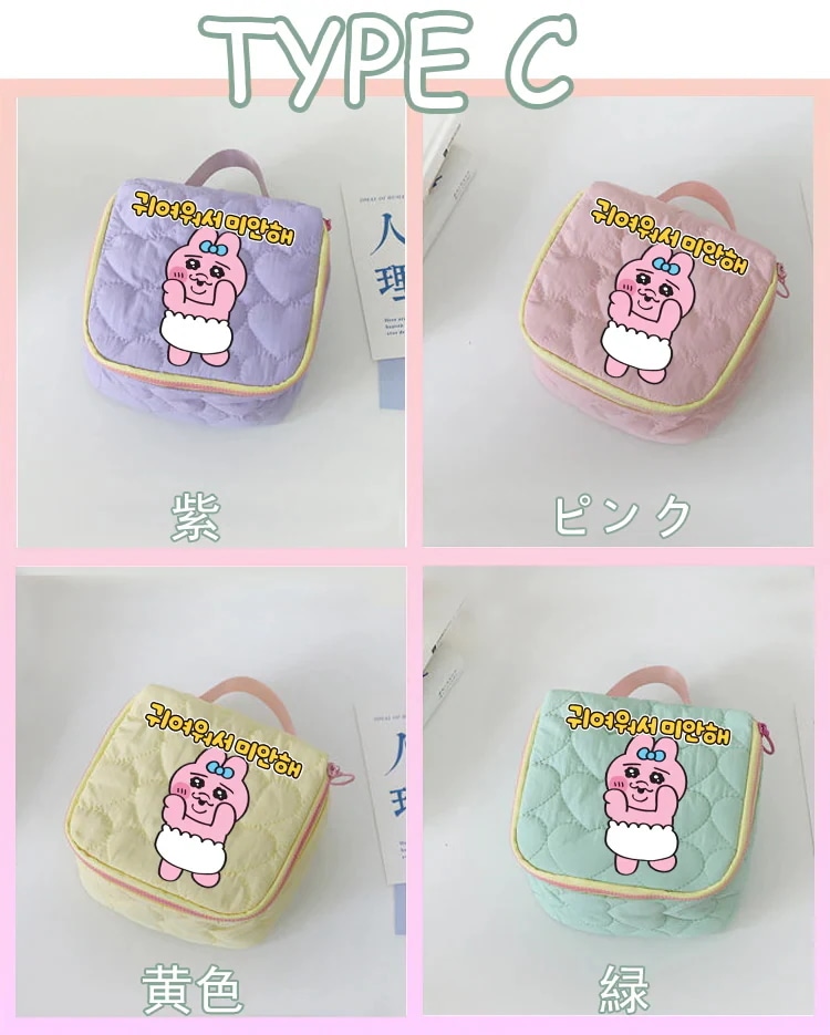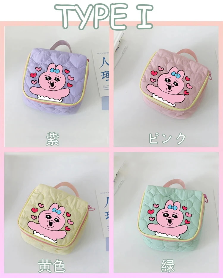 おぱんちゅうさぎ スクエア型化粧ポーチ かわいい収納バッグ 漫画風 キャンディーカラー 化粧ポーチ ハンドバッグ