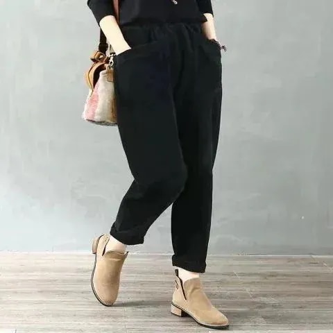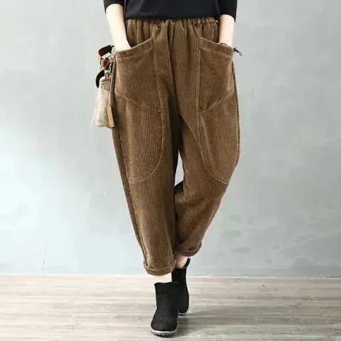 2026 春 裏起毛コーデュロイパンツ 新作 無地 レトロ ゆったり ポケット カジュアル ロングパンツ レディース