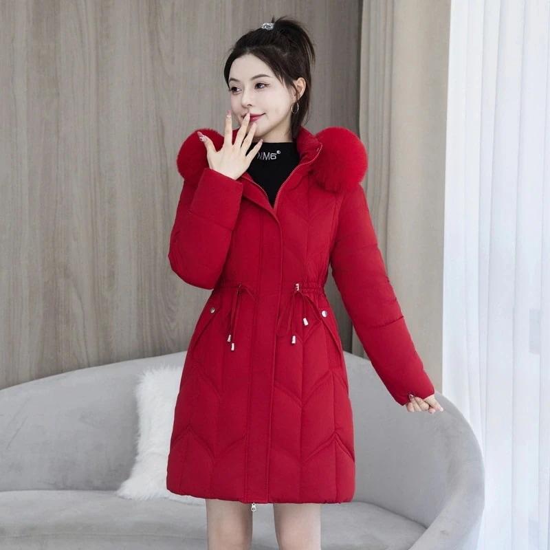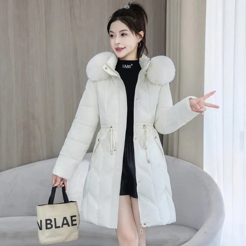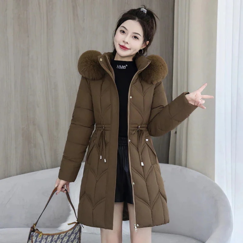 新作ウィンターファッション ファー付きダウンジャケット フード付きミドル丈 中年向けスリムフィット 厚手ダウンコート ダウンジャケット
