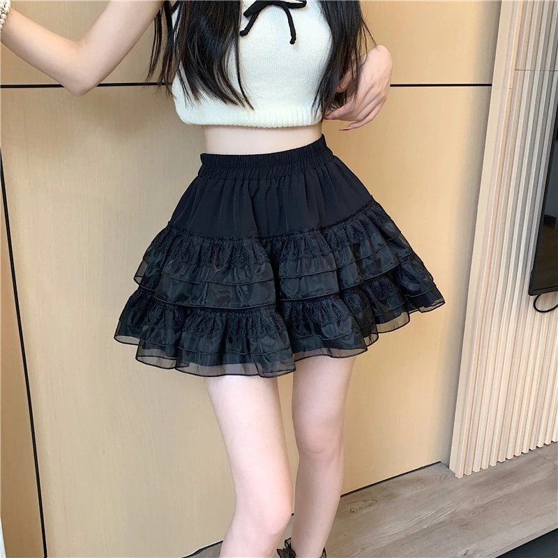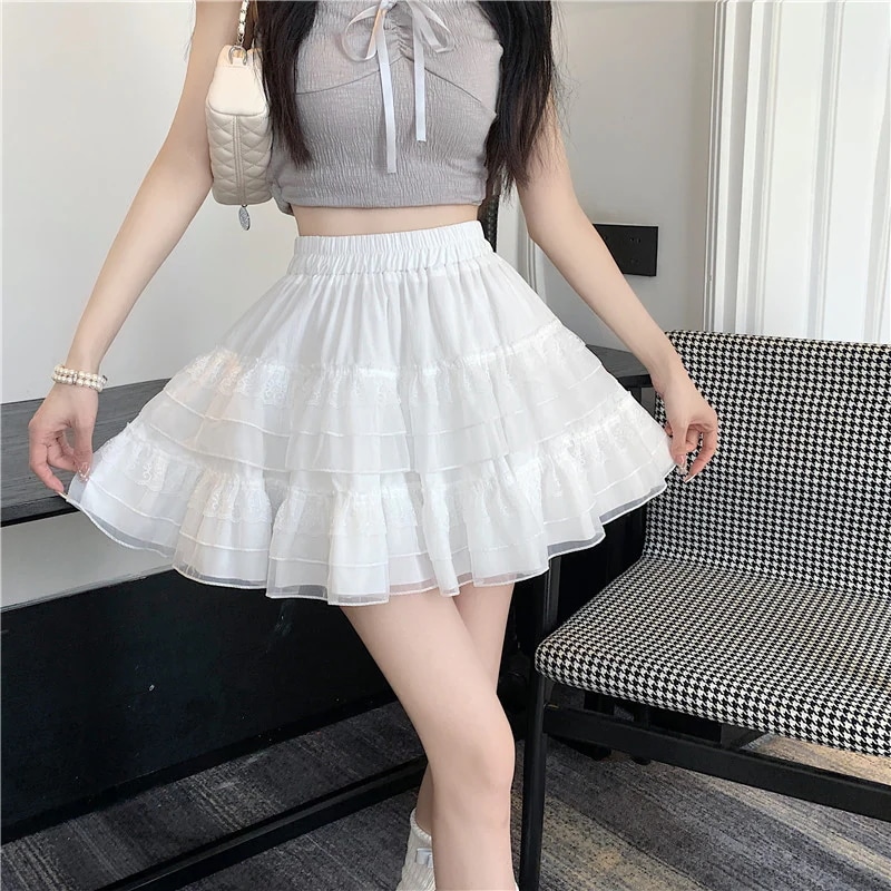 脚魅せミニスカート 女性用 レース フリルスカート 夏用 ハイウエスト フリル ケーキスカート Aライン ミニスカート