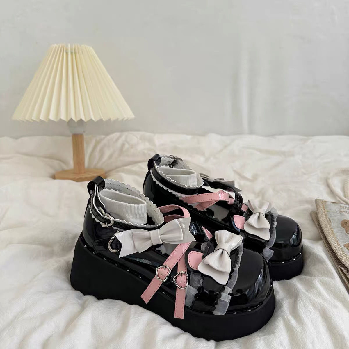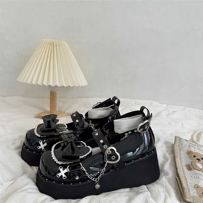 ロリータシューズ マフィン厚底ロリータゴシックガールズスウィートクールかわいい小さな革靴スパイス女の子百蝶女性の靴