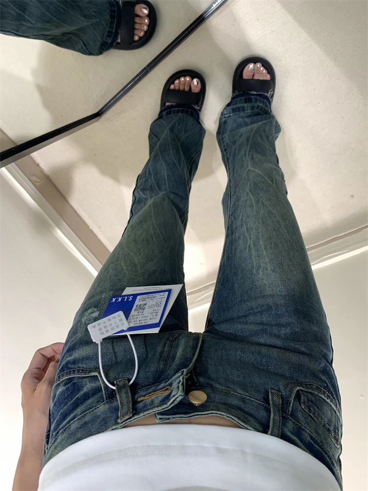 ロングパンツ 春秋刺繍微フレアデニムパンツ 女性 アメリカン ハイストリート風デザイン刺繍ハイウエスト ロングパンツ
