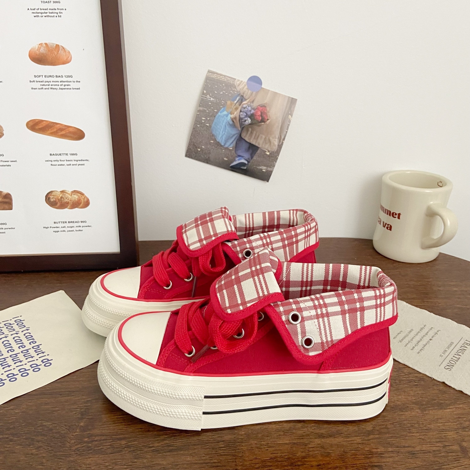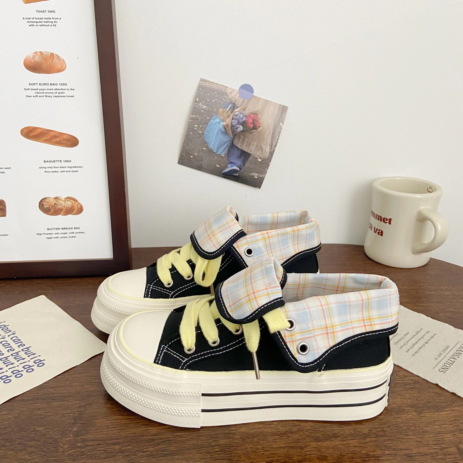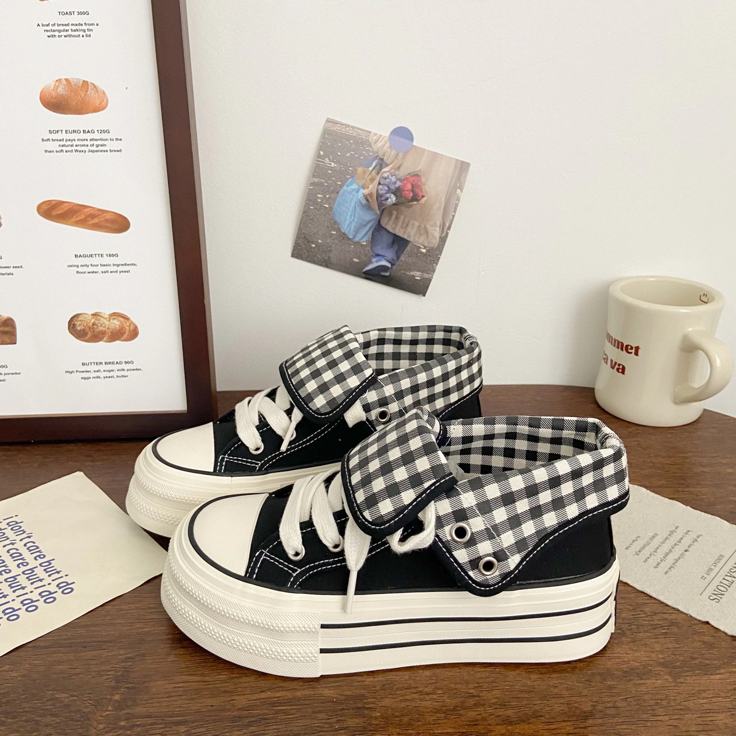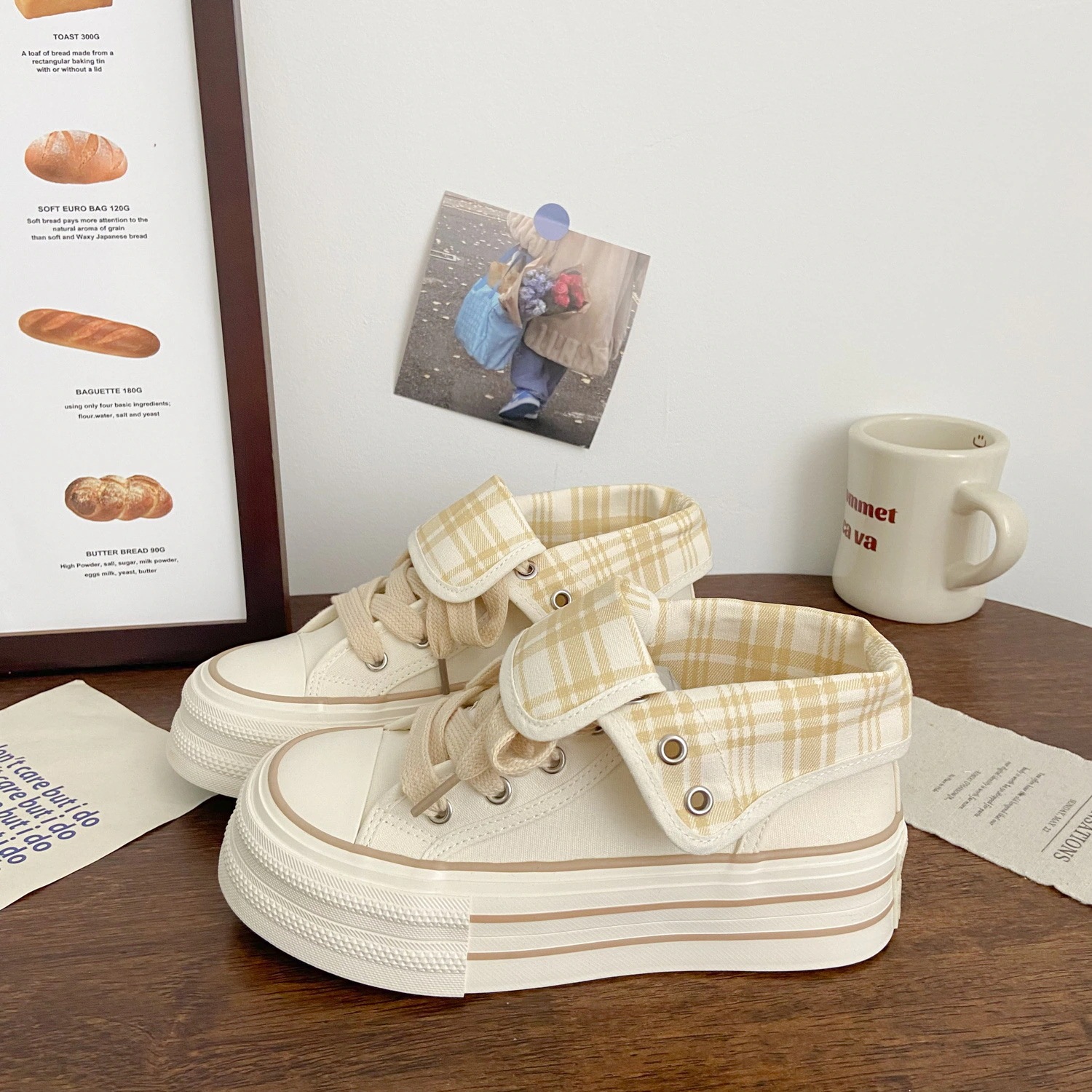韓国風高感度カジュアルシューズ 2026年秋新作 限定チェック柄ホワイトスニーカー 学生向け厚底キャンバスシューズ 女性用厚底カジュアルシューズ