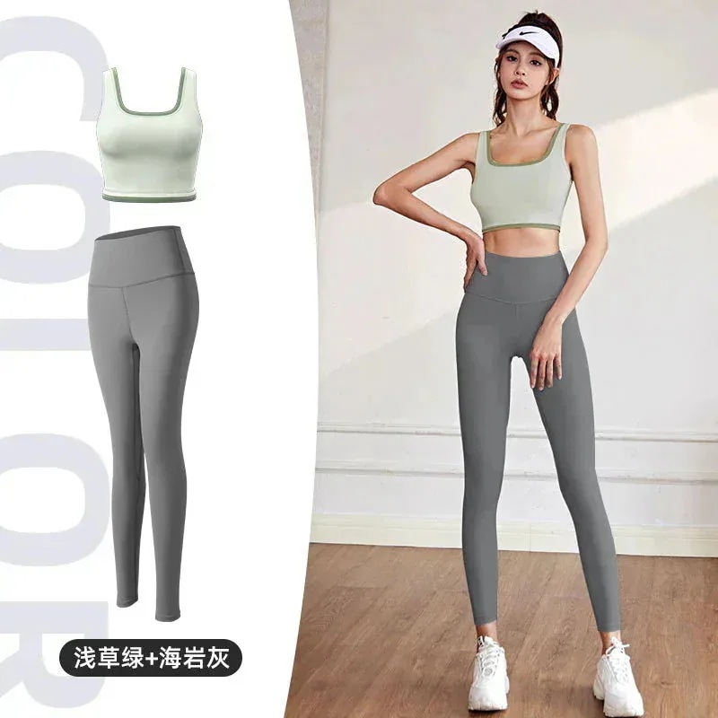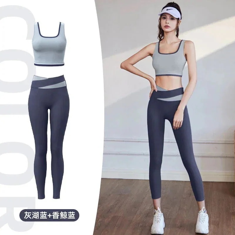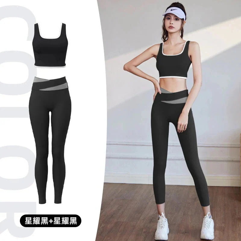 韓国ファッションヨガウェアセット 高弾性カラーブロッキングトリミングスポーツ下着 ギャザーショービッグコレクトサイドバスト衝撃吸収速乾ヨガブラ