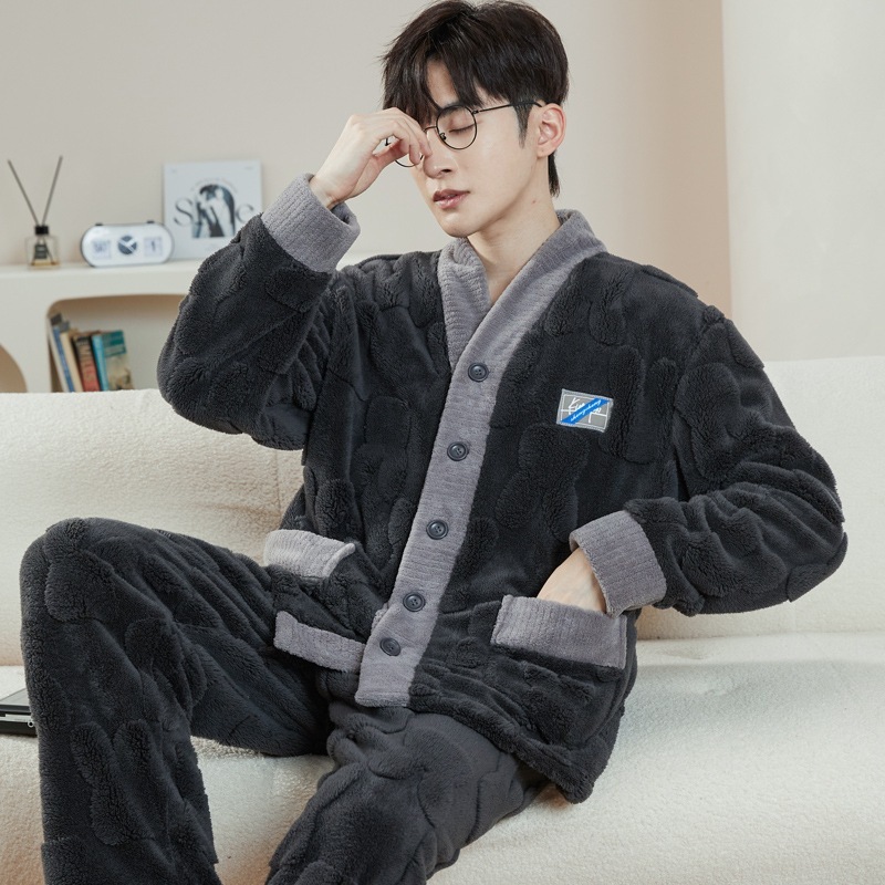 新作369長袖 パジャマ メンズ セットアップ 上下セット 冬 暖かい 裏ボア 裏起毛 もこもこ ルームウェア ナイトウェア 前開き カジュアル 寝巻き 厚手 部屋着 モコモコ