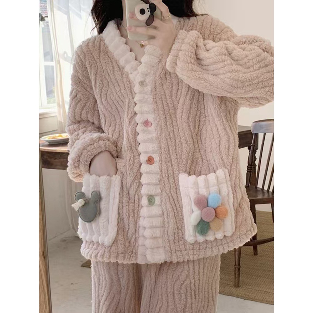 新作335レディースルームウェア 長袖 裏起毛 厚手 防寒 あったか 寝巻き 着ぐるみ 前開き 秋冬 モコモコ フリース かわいい 暖かい あったかグッズ ガウン ナイトガウン