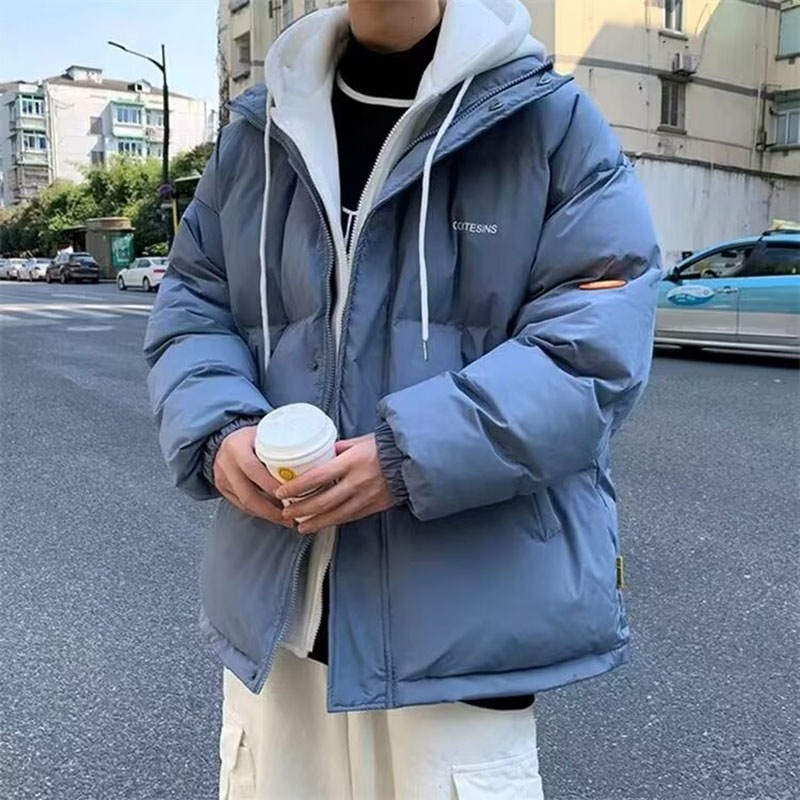 新作413中綿ジャケット メンズ フェイクレイヤード フード付き 中綿コート 通学 20代 防風 カジュアル ストリート 冬 アウター コート アウトドア ジャンパー