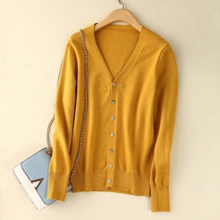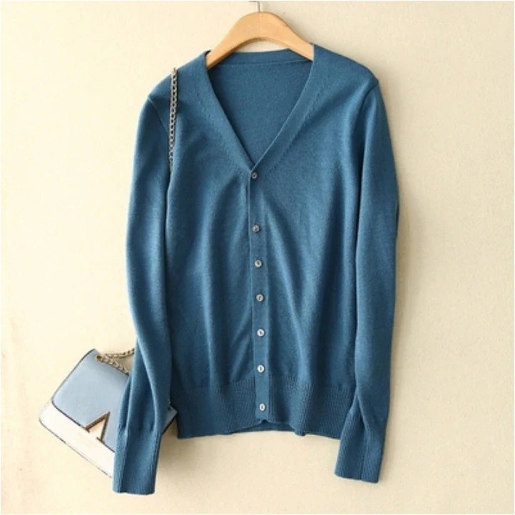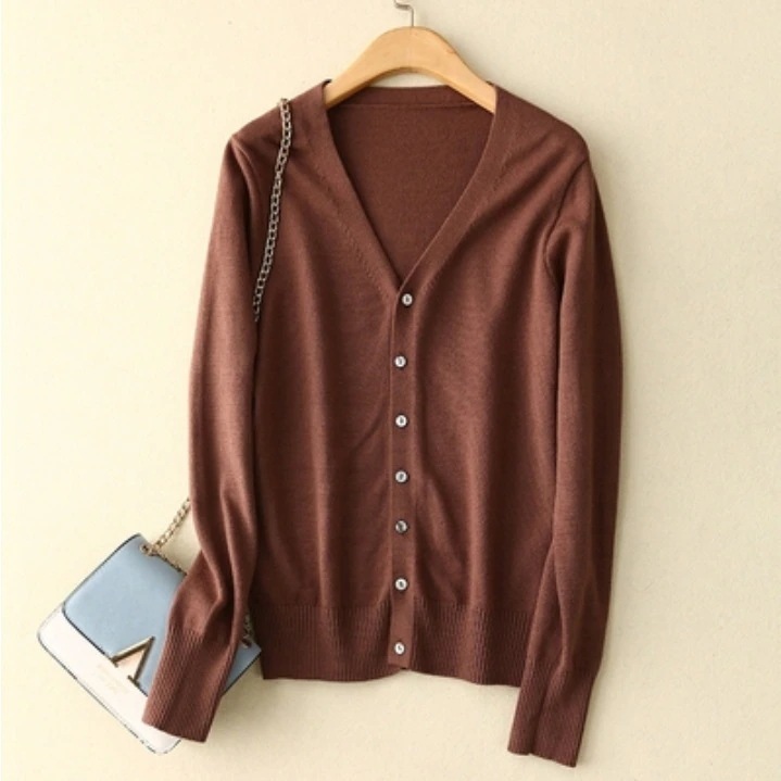 ニットカーディガン レディース Vネック ミディアム丈ニットカーデ 薄手 ゆったり 春秋 無地