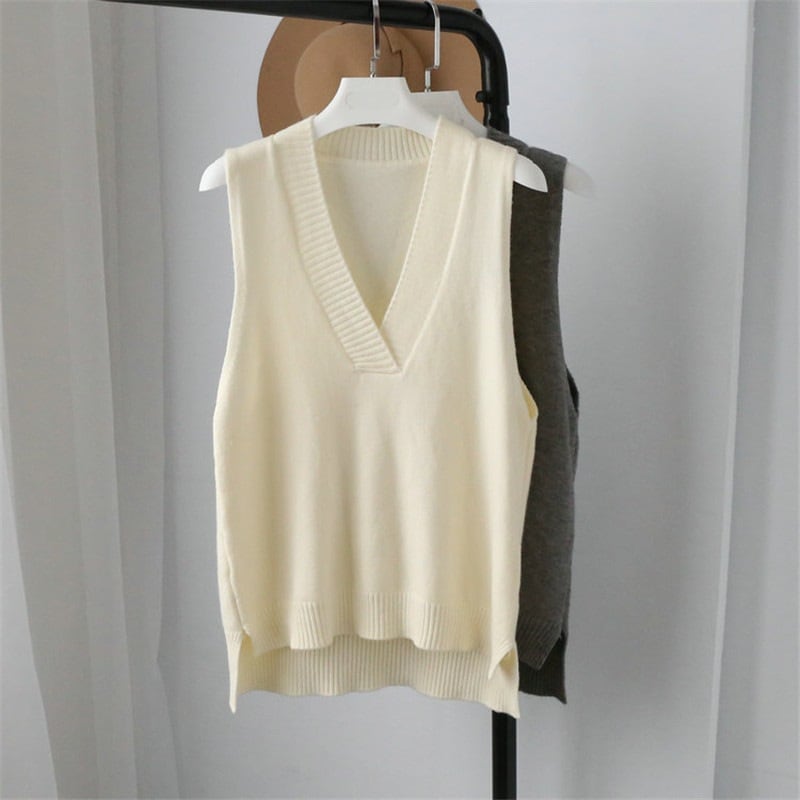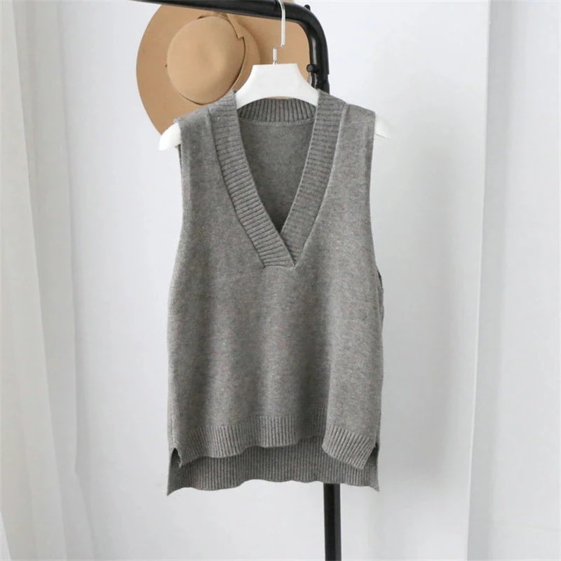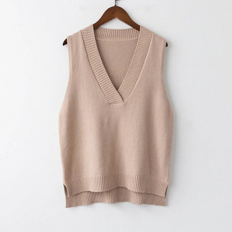 ニットベスト レディース Vネック ベスト チョッキ トップス ノースリーブ ゆったり プルオーバー レイヤード 重ね着 通学 通勤 オフィス