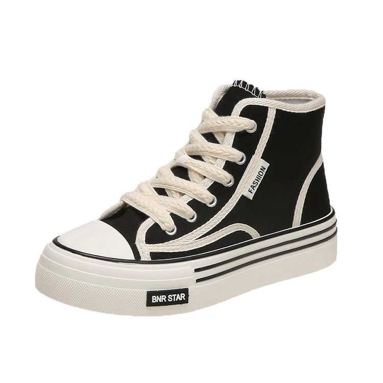 ハイカットキャンバスシューズ(女性用) 2026年新作 韓国風 通気性 丸トゥ ホワイトスニーカー 学生向け カジュアル 紐靴 厚底スニーカー