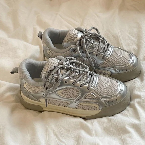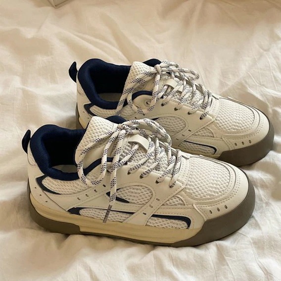 学生向けレトロ風トレーニングシューズ 2026年秋新作 韓国風通気性パンチシューズ ニッチな厚底ローカットカジュアルスニーカー 厚底カジュアルシューズ