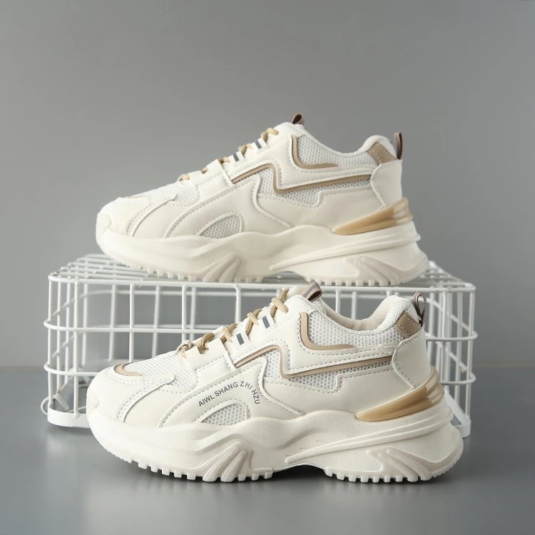 スニーカー女性2026新作通気性厚底スニーカー 厚底カラーブロックメッシュ学生用ダッドシューズ厚底カジュアルシューズ