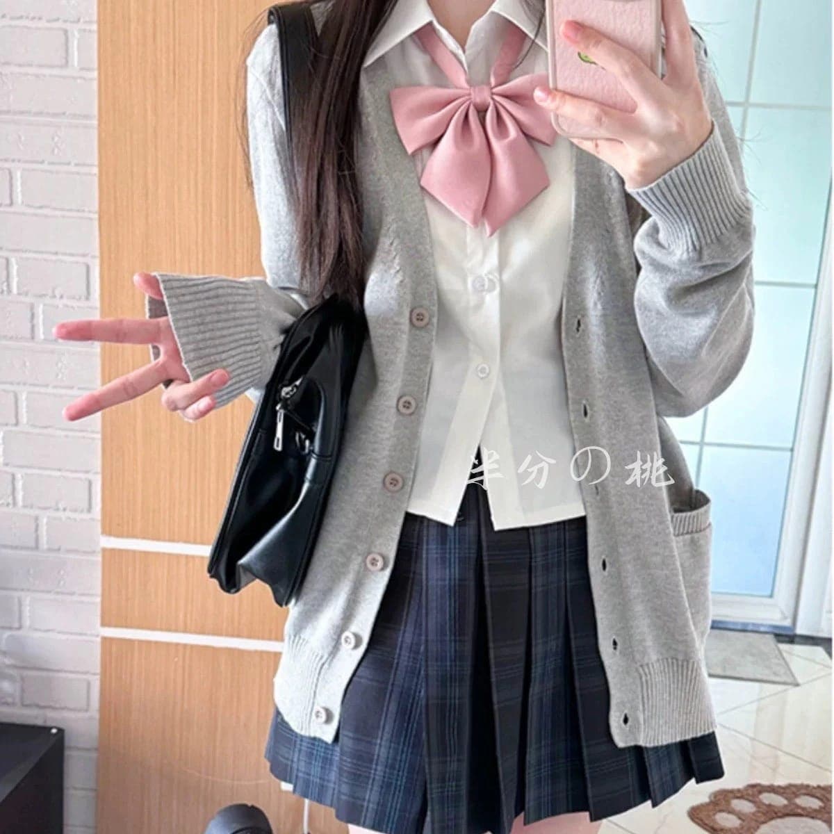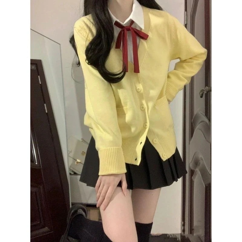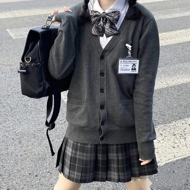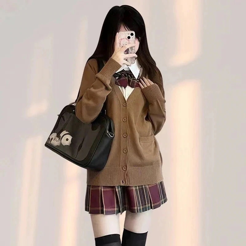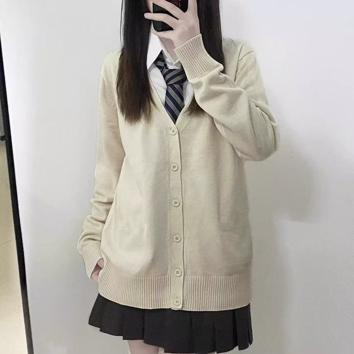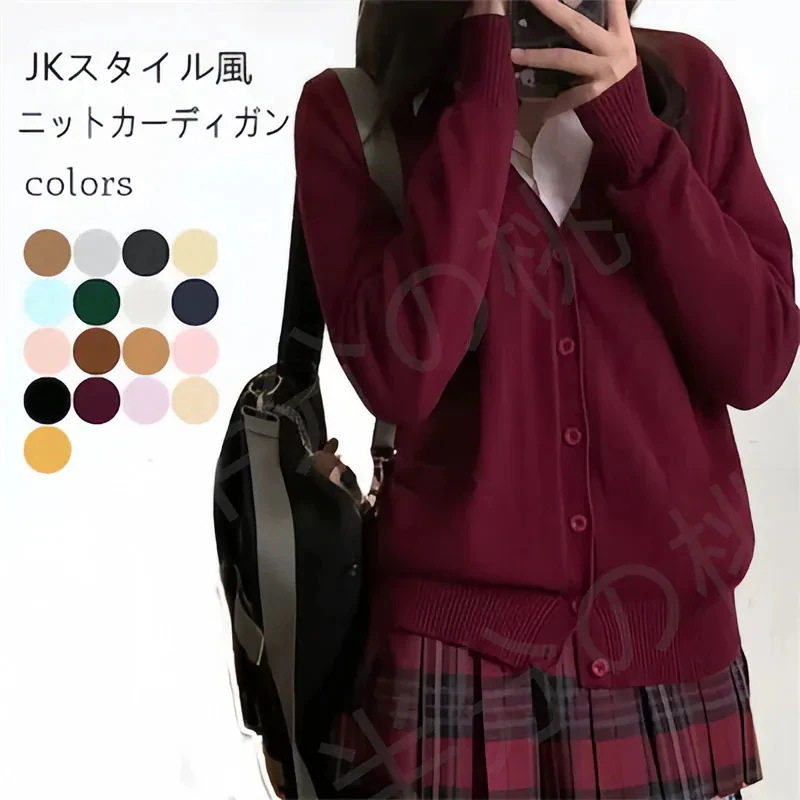 2026人気新作 Vネックニット無地 日系キャンパス風 カーディガン 女子高生 jk制服 おしゃれ ニットカーディガン トップス 高級感 ベーシックニット レディース ニットカーディガン