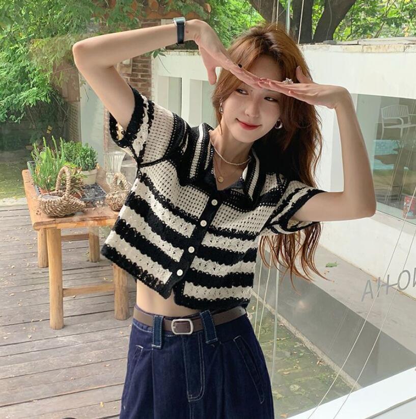 夏 人気 uvカット カーディガン ストライプ ニット 半袖 ゆったり ショート丈 日焼け防止 サマーカーデ レディース