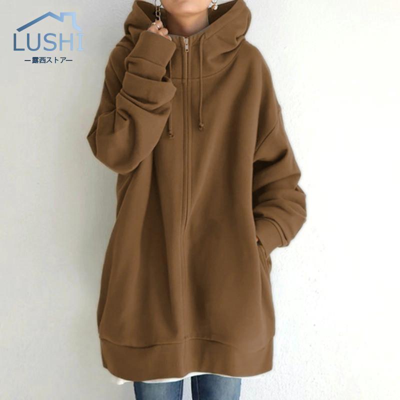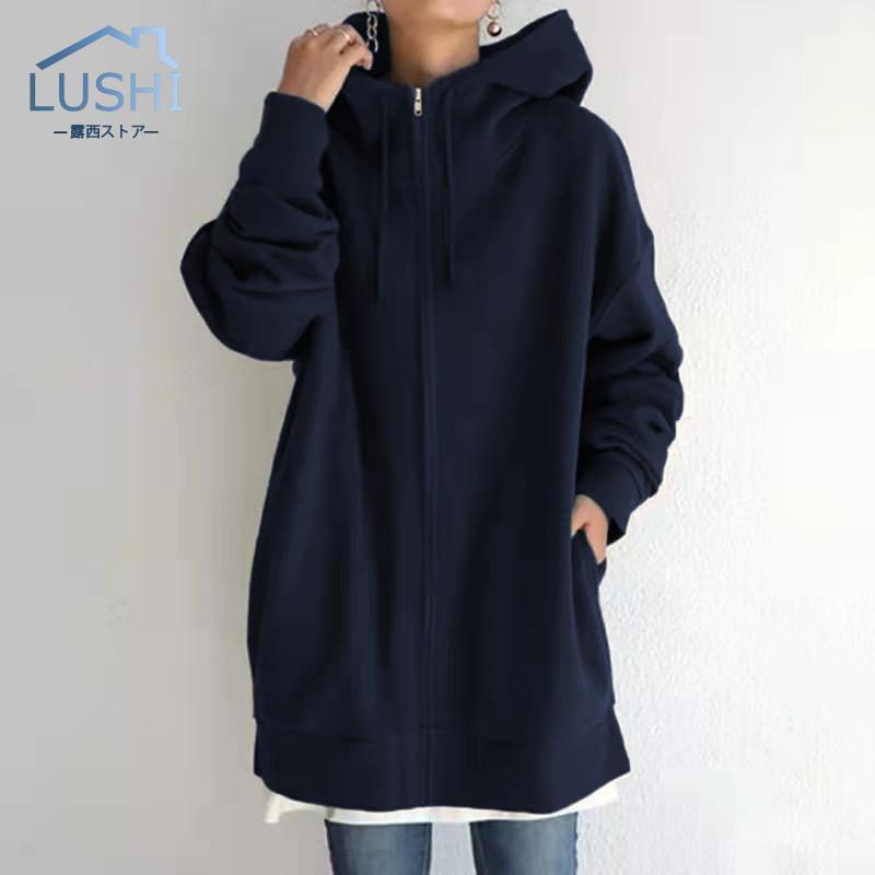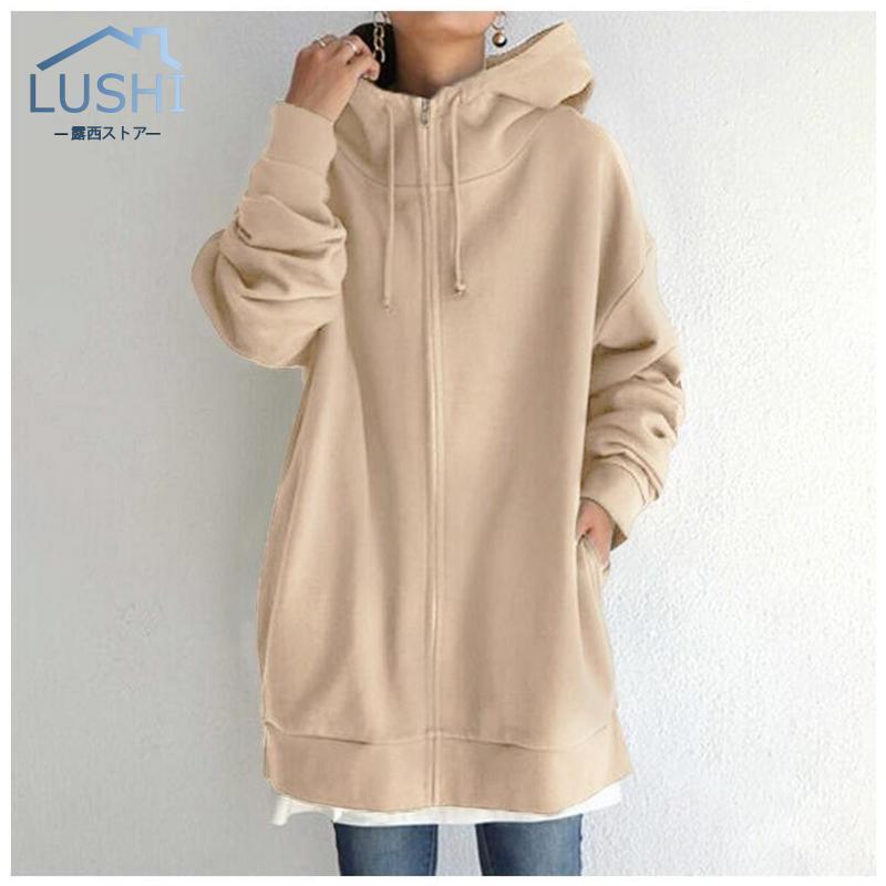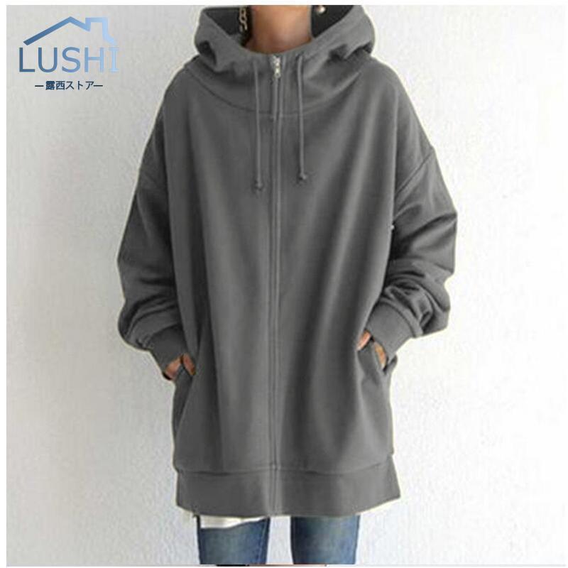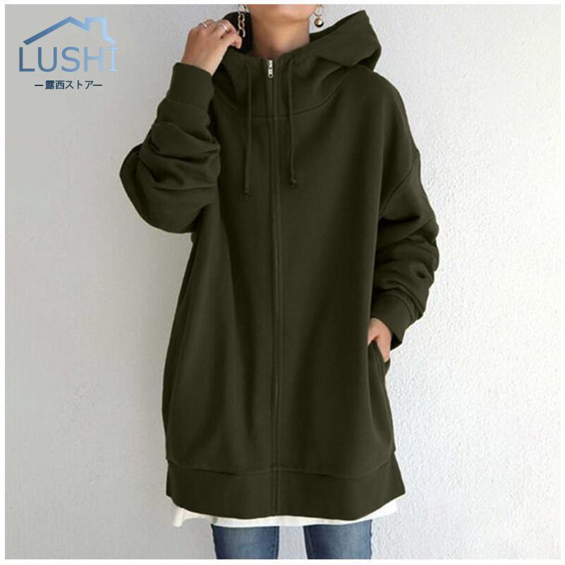 目玉商品超人気 パーカー レディース 裏起毛 フード付き トップス 無地 長袖 前開き ロング カジュアル 暖かい ゆったり イベント ファション 普段着