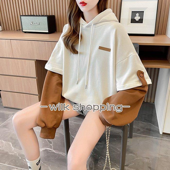 新品 大人気 パーカー 切り替え 可愛い レディース プルオーバー 長袖 トップス スウェット ゆったり ファッション お洒落